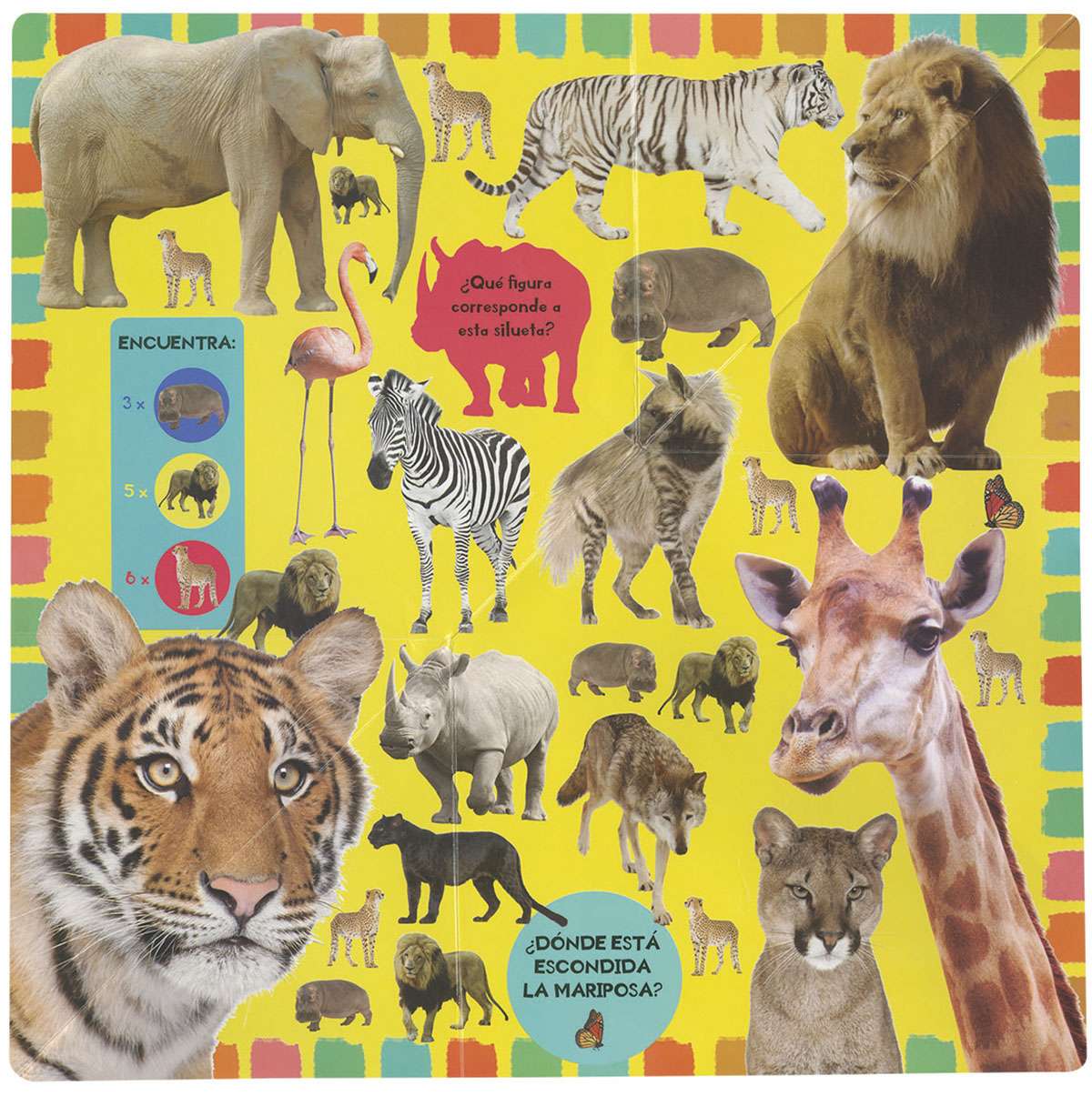 El fiero león, el guepardo moteado, el tiburón blanco que acecha las aguas... las ranas de colores llamativos, las serpientes de cascabel o el inquieto oso panda. Juega y diviértete buscando los animales, encontrando a los intrusos y adivinando las siluetas ocultas en este increíble LIBRO POP-UP.