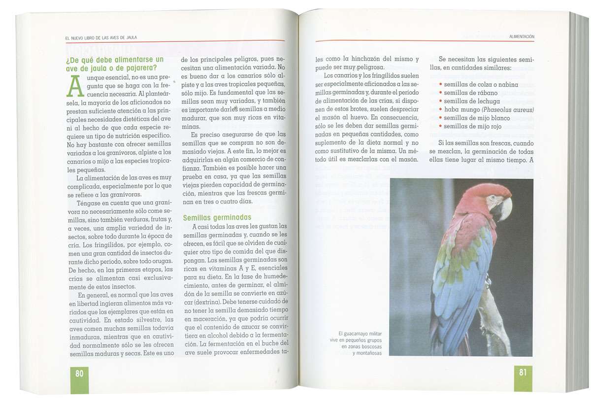 Cada vez son más las personas que disfrutan criando pájaros en casa. No es de extrañar a la vista de su canto y su plumaje. Pero hay mucho más que eso: sentimientos, apego y necesidades que este libro le ayuda a descubrir. Contiene todo lo referente a jaulas, pajareras, cuidados, cría, enfermedades, comida... La mejor guía, práctica fruto de la experiencia, para criar pájaros sanos y hermosos.