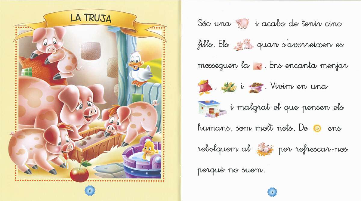 Una col·lecció especialment pensada per a motivar als més petits. Amb lletra gran i manuscrita per a facilitar la lectura, i molts pictogrames divertits. Endevina el seu significat o consulta'l en el diccionari que hi ha en el llibre! En aquesta ocasió els protagonistes són els animals de la masia. Descobreix les millors històries i les anècdotes més divertides d'aquests pròxims éssers.