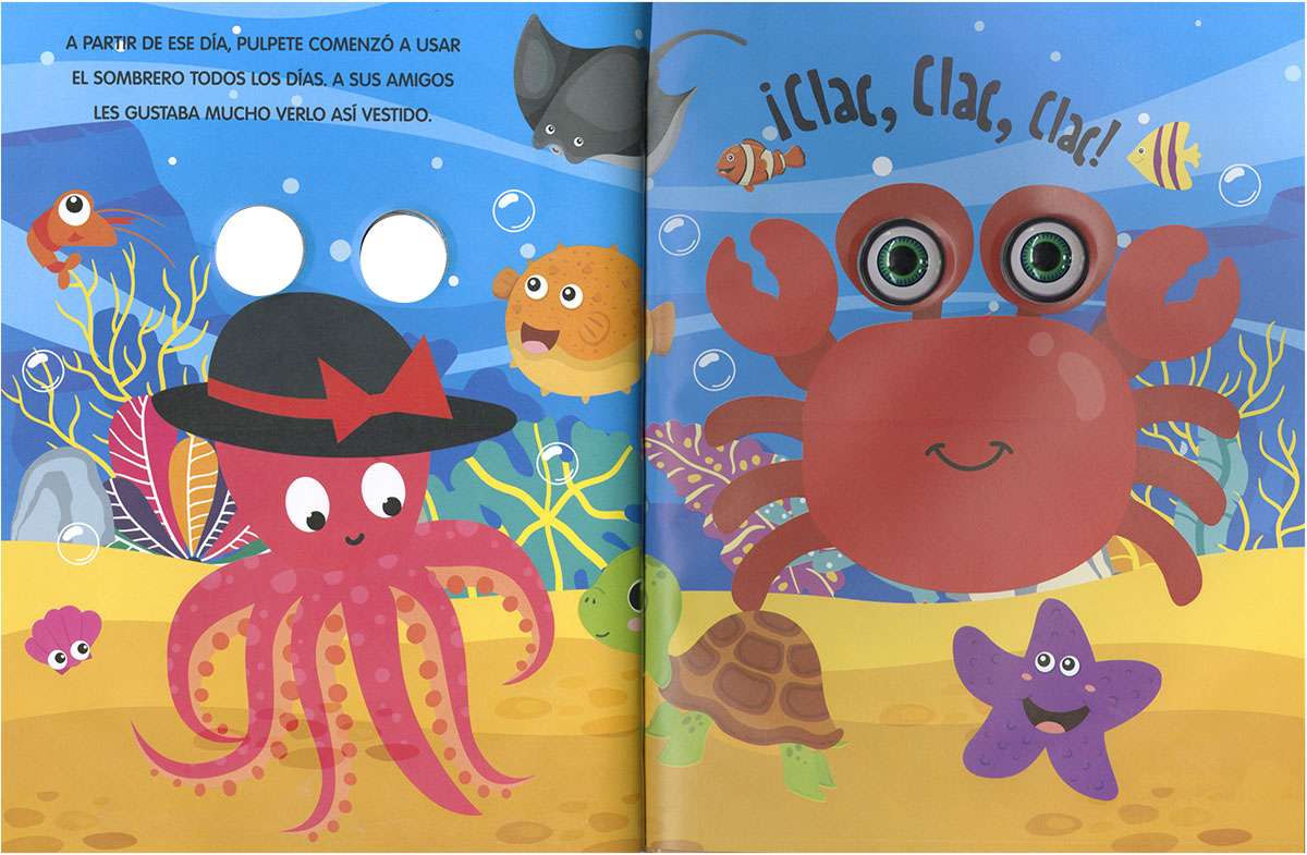 Un día, Pulpete encuentra un sombrero bajo el mar... ¡y le encanta! Siempre se lo pone, hasta que un día desaparece. ¿Dónde estará? Un original libro con ojos que se mueven para que disfrutes de las divertidas caras que pone el pulpo.