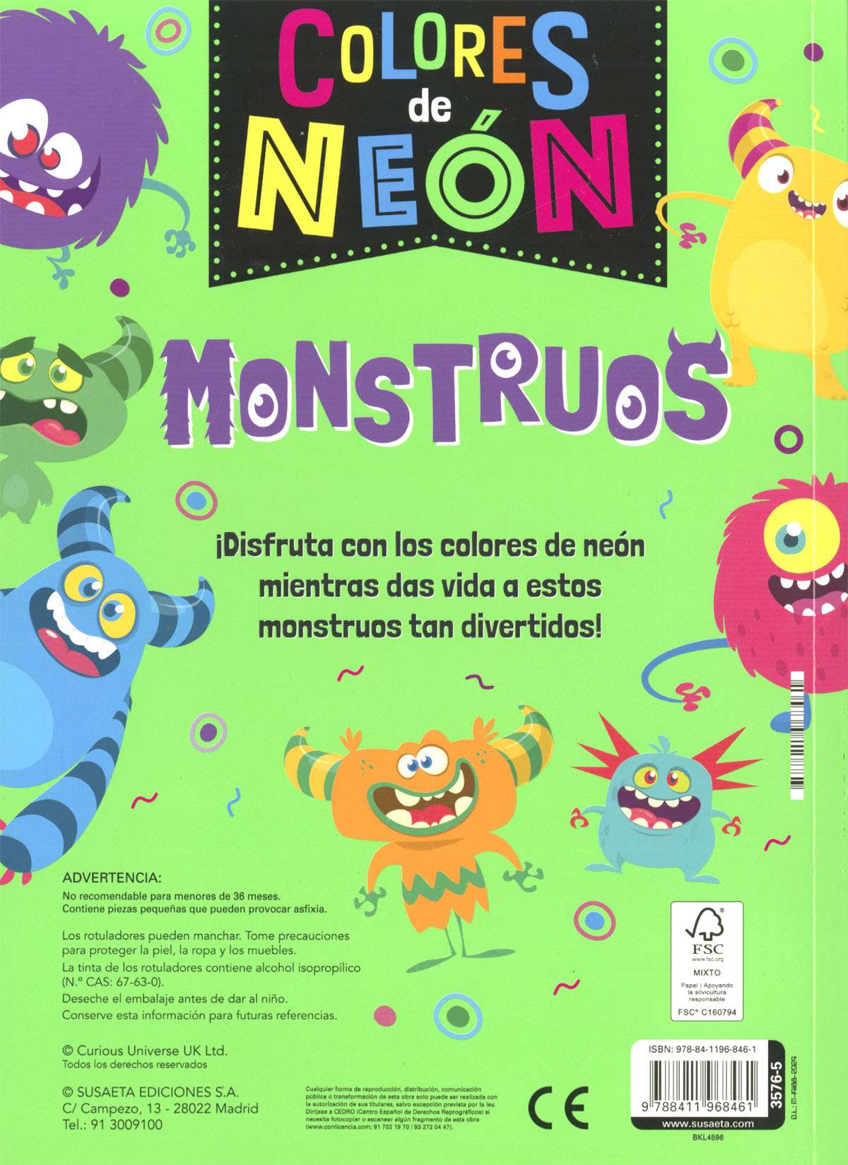 Da vida a un montón de divertidos monstruos con tus pinturas favoritas y resalta tu obra con los rotuladores flourescentes que encontrarás en el libro. ¡Espectacular!