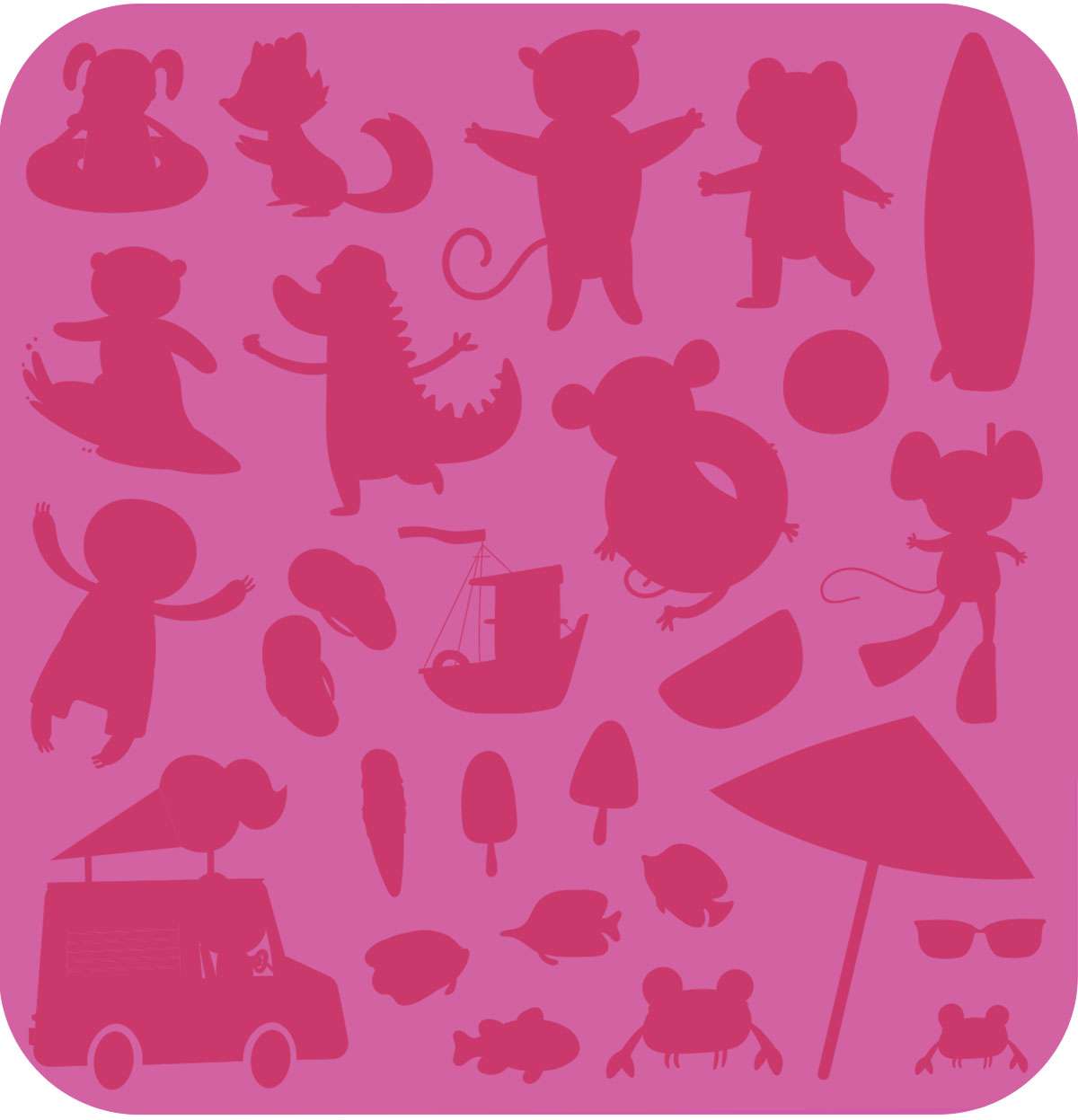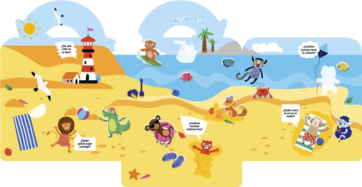 Juega con las pegatinas de este libro colocándolas donde prefieras y cuantas veces quieras: las pegatinas de gelatina se pueden despegar, ¡así puedes inventar un montón de aventuras distintas en la playa!