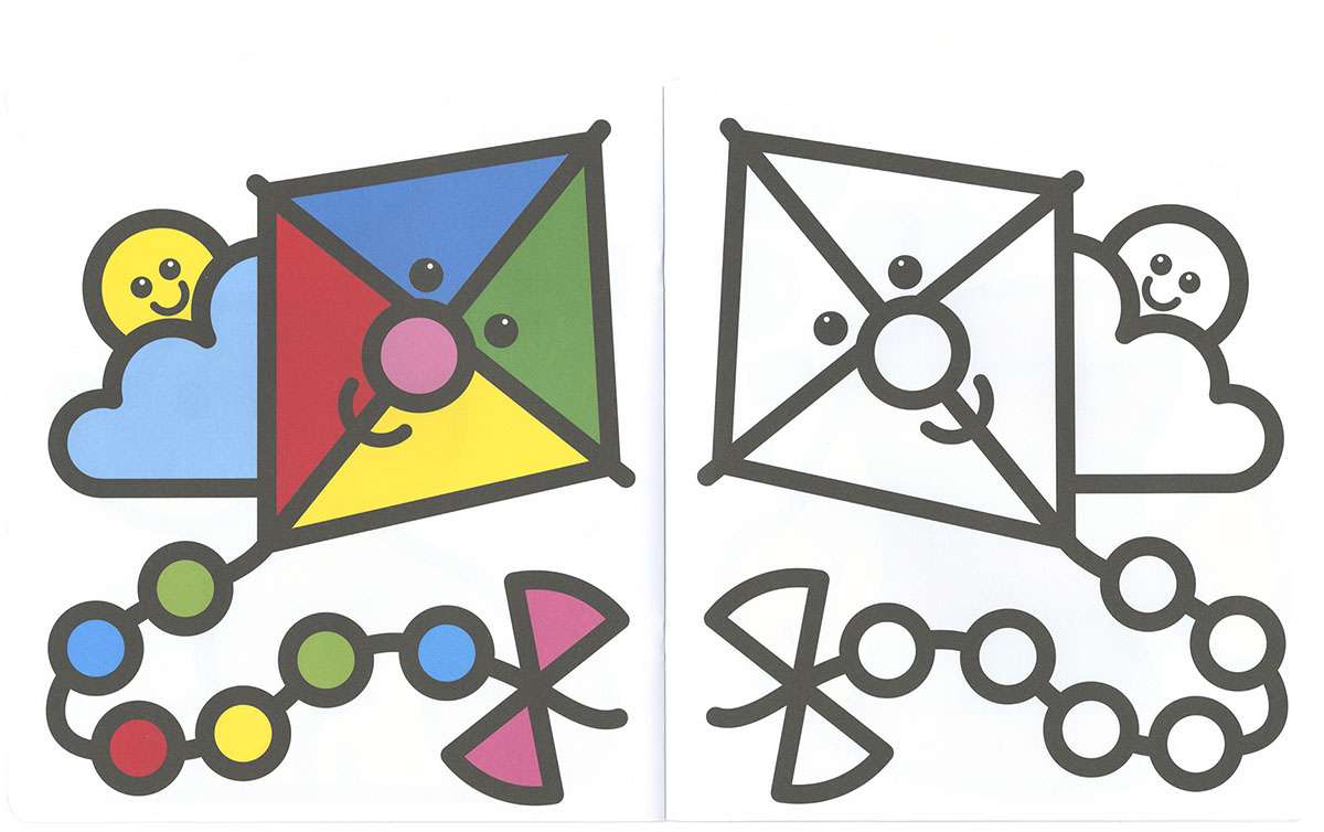 Un bonito libro de colorear para los más pequeños, con divertidos dibujos de líneas gruesas y colores primarios.
