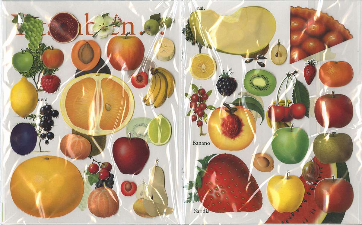 Diviértete creando tus propios escenarios con las pegatinas que encontrarás en el interior mientras descubres el fascinante mundo de las frutas.