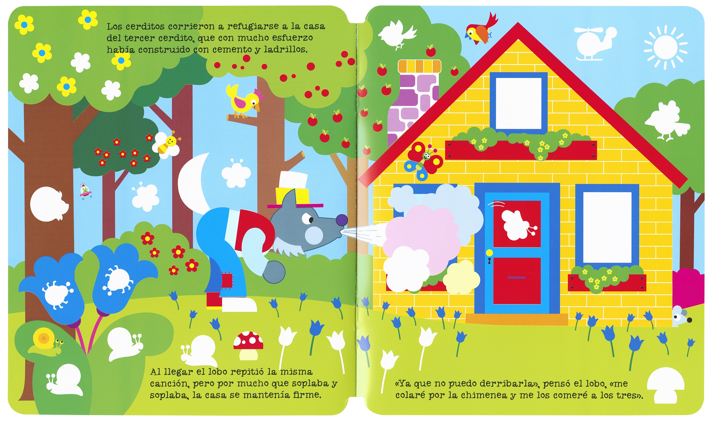 Un divertido libro para que los pequeños lectores disfruten con la lectura de "Los tres cerditos" y se entretengan colocando las pegatinas en el lugar adecuado.