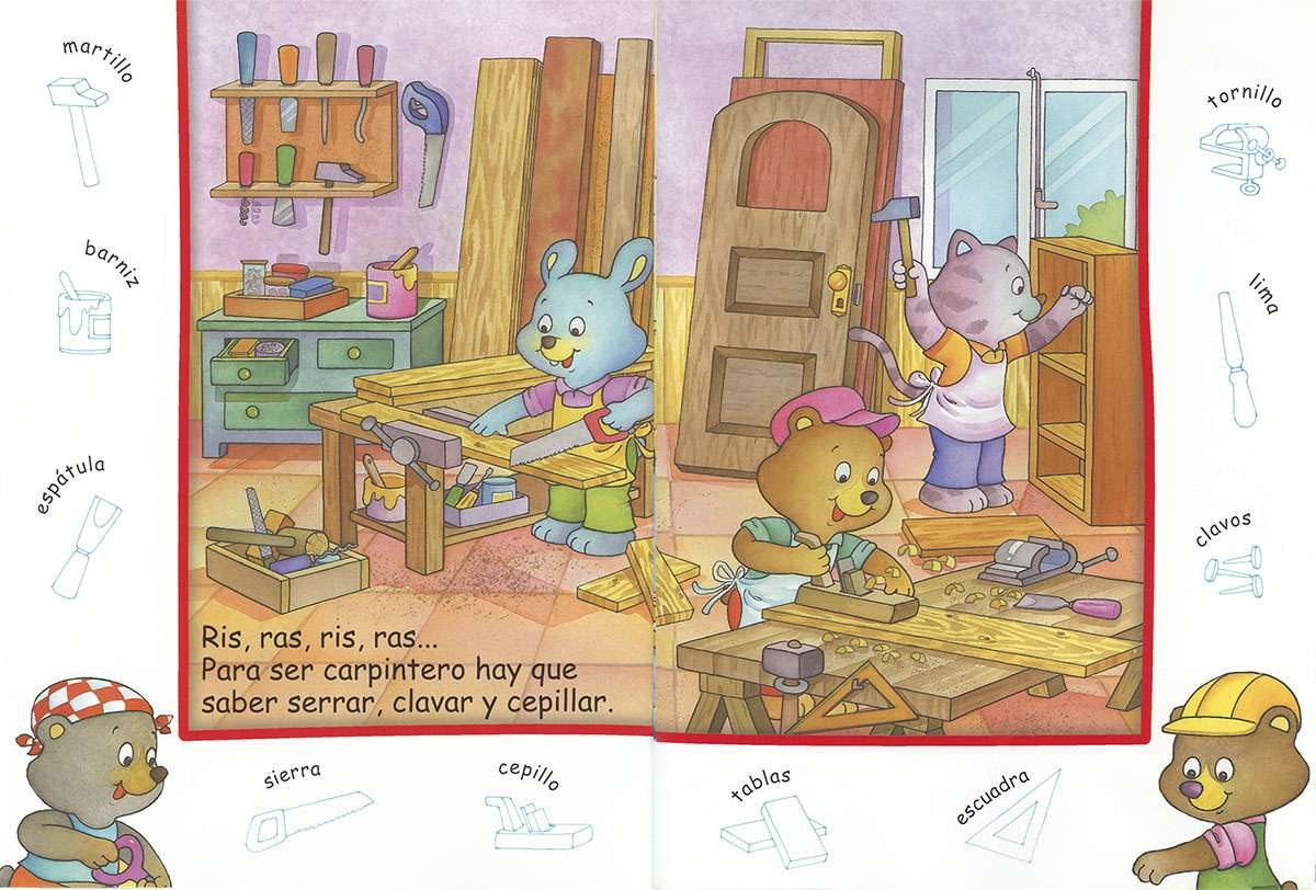 Un libro visual para imaginar mil historias, junto con ciento veinte pegatinas acompañadas de su nombre que ayudarán al niño a familiarizarse con la escritura de las palabras más cotidianas.