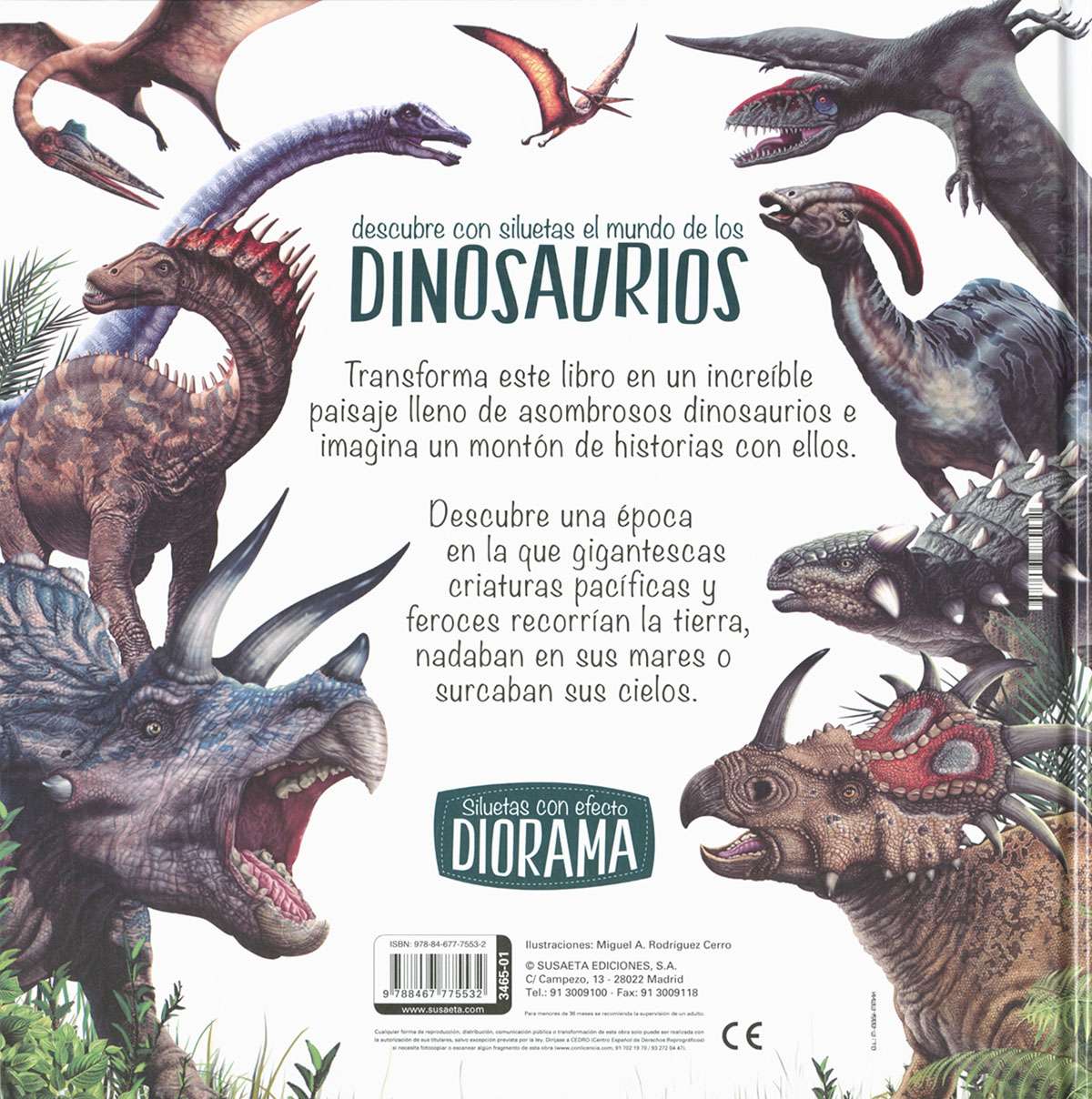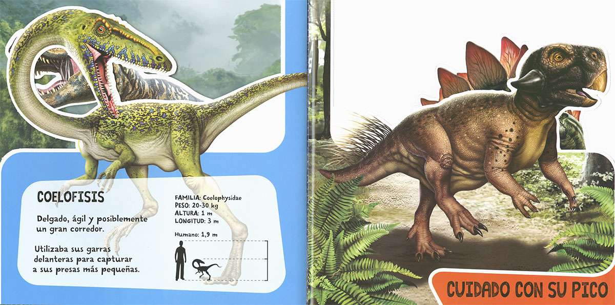 Transforma este libro en un increíble paisaje lleno de asombrosos dinosaurios. Abre sus páginas, despliega el paisaje del fondo y desprende las siluetas de los animales. ¡Te parecerá que están vivos! Lee los datos y curiosidades de cada uno e imagina un montón de historias con todos ellos. Descubre una época en la que gigantescas criaturas pacíficas y feroces recorrían la tierra, nadaban en sus mares o surcaban sus cielos.