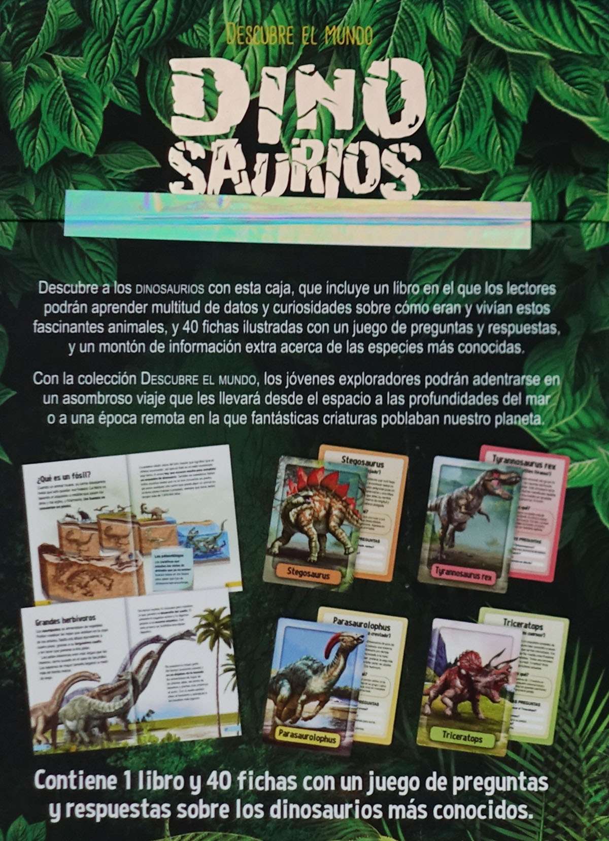 Descubre a los dinosaurios con esta caja, que incluye un libro en el que los lectores podrán aprender multitud de datos y curiosidades sobre cómo eran y vivían estos fascinantes animales, 40 fichas ilustradas con un juego de preguntas y respuestas, y un montón de información extra acerca de las especies más conocidas.
