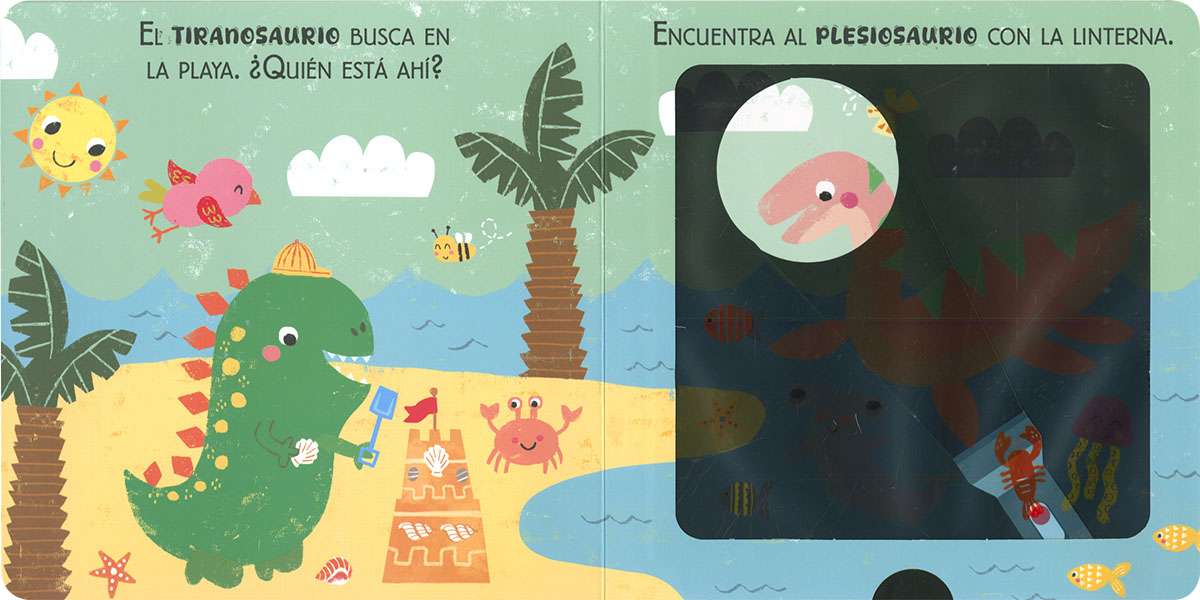 El dinosaurio está jugando al escondite y tienes que ayudarlo a encontrar a sus amigos. ¡Usa la linterna y empieza a buscar! Un libro de hojas de cartón de contenido interactivo ideal para niños y niñas que empiezan a descubrir el mundo.