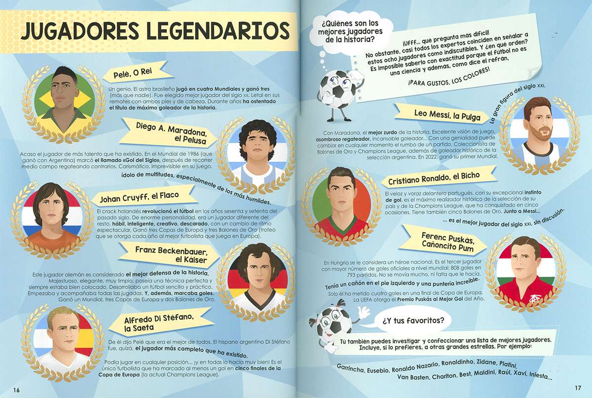 Prepárate para un largo y apasionante viaje futbolístico a través del espacio y el tiempo. Visitarás los cinco continentes, conocerás sus estadios, asistirás a los mejores partidos, rememorarás los goles más célebres, admirarás a las grandes estrellas del deporte rey y te sorprenderás ante algunas historias increíbles.