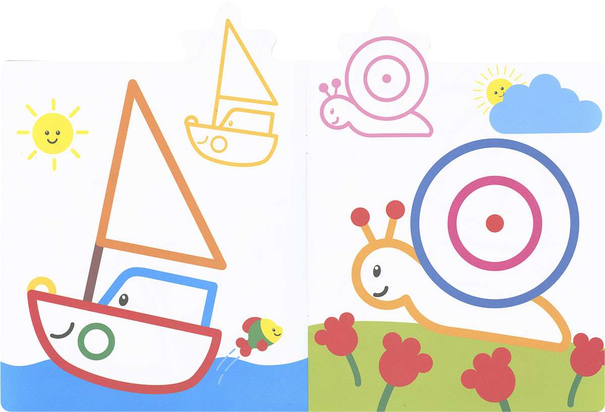 Kokatu eranskailu bakoitza dagokion tokian eta margotu marrazkiak. Bilduma polit honetan, irudiak etxeko artista txikien adinari egokituta daude.