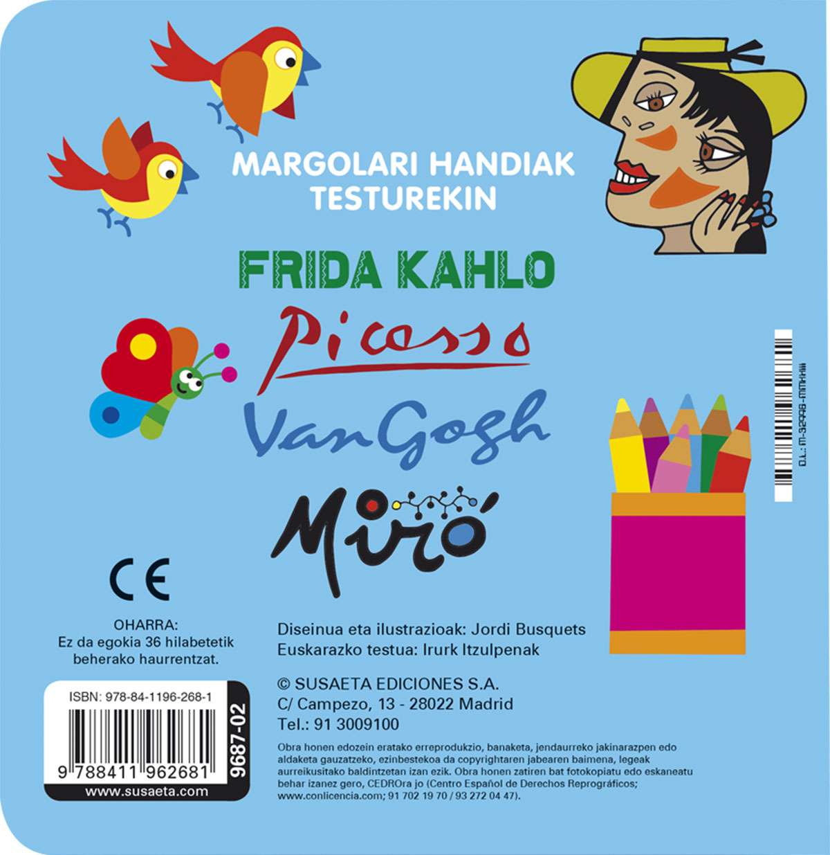 Ezagutu margolari ospetsuenak eta ukitu haien lanen testura harrigarriak. Liburu honek kartoizko orriak ditu, eta oso egokia da etxeko irakurle txikientzat.