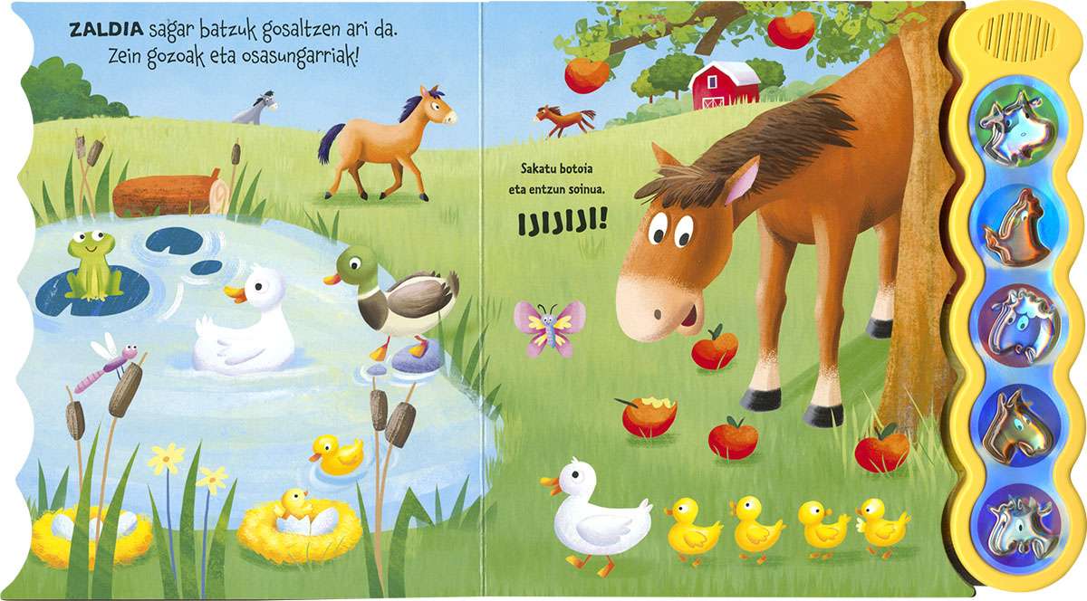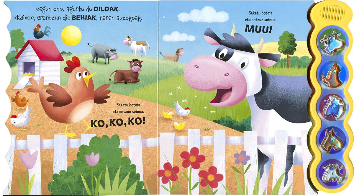 Animaliak gogoko badituzu, hementxe dituzu oiloa, behia, ardia, zaldia eta ahuntza. Ederki pasa haien soinu eta hotsekin!