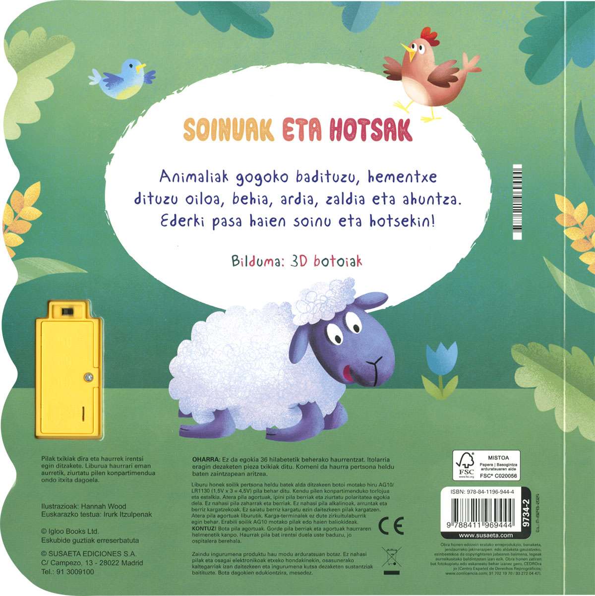 Enquadernació: Libro de cartón, plastificado en brillo, con módulo de sonido.