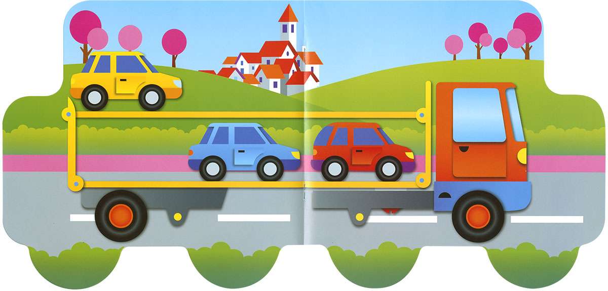 Osatu irudiak eta ibilgailuak liburuko eranskailuekin. Lekuz alda ditzakezu, eta nahi beste aldiz itsatsi eta kendu. Zein dibertigarria!