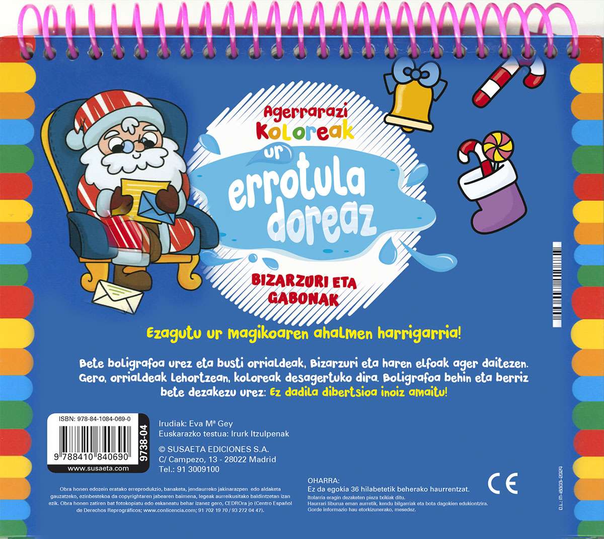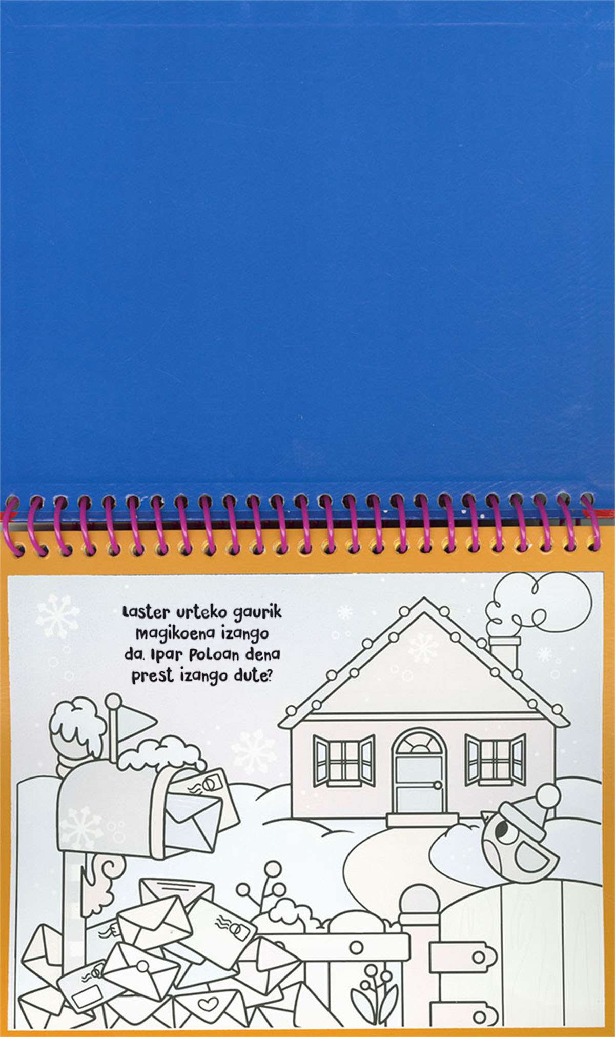 Ezagutu ur magikoaren ahalmen harrigarria! Bete boligrafoa urez eta busti orrialdeak, Bizarzuri eta haren elfoak ager daitezen. Gero, orrialdeak lehortzean, koloreak desagertuko dira. Boligrafoa behin eta berriz bete dezakezu urez: Ez dadila dibertsioa inoiz amaitu!