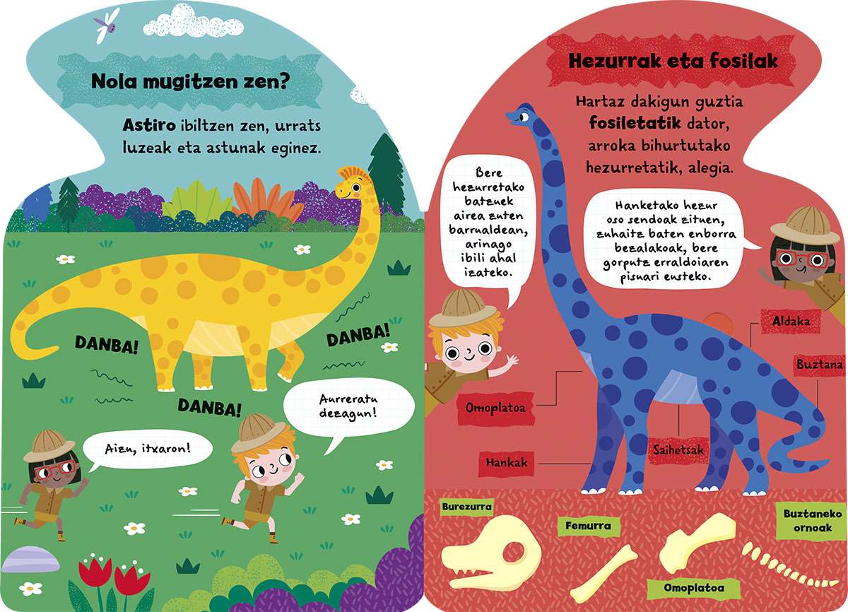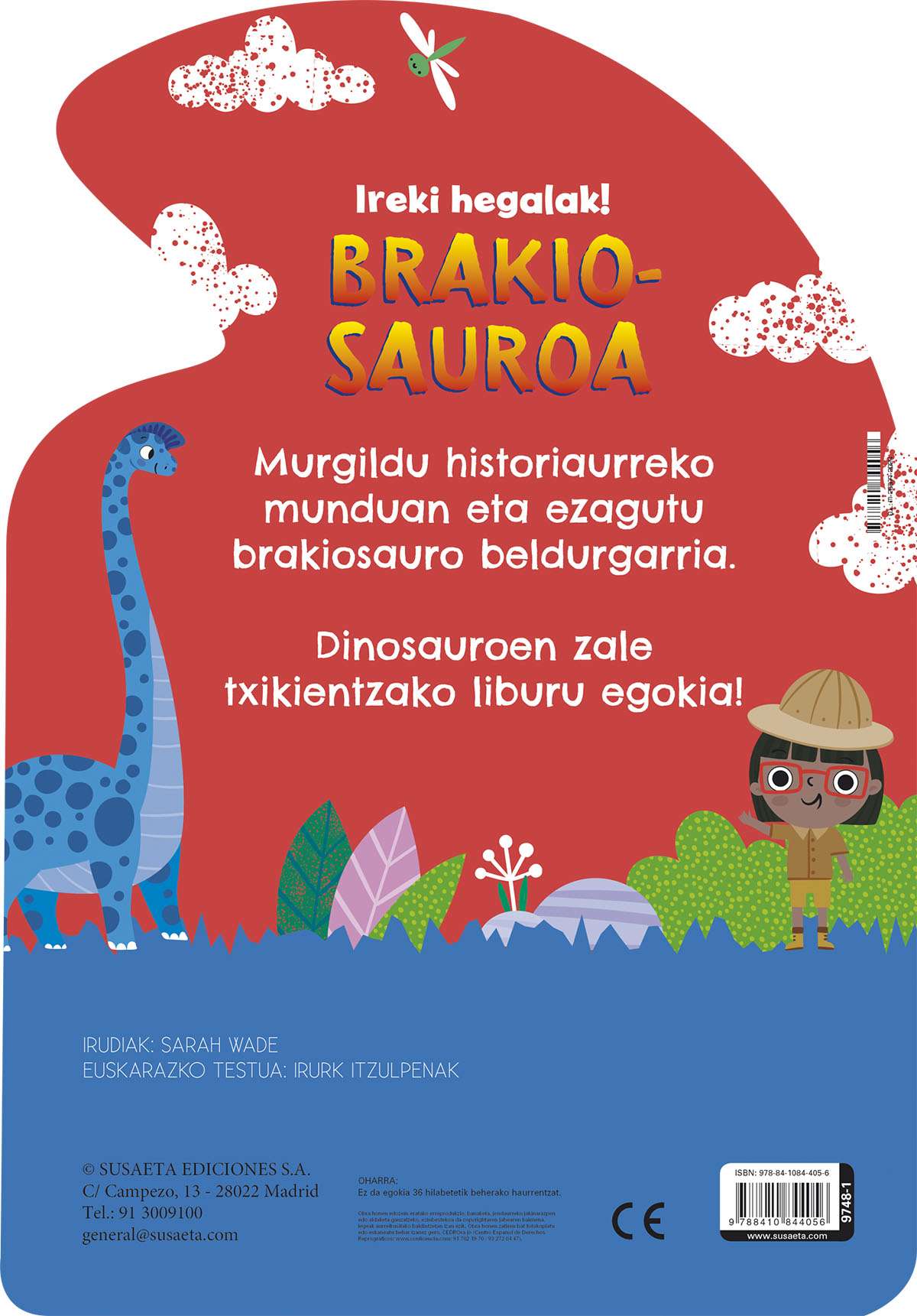 Altxatu estalkiak, sartu historiaurreko munduan eta ezagutu brakiosauro ikusgarria. Dinosauro zale gazteentzat aproposa den kartoizko liburu erraldoia.
