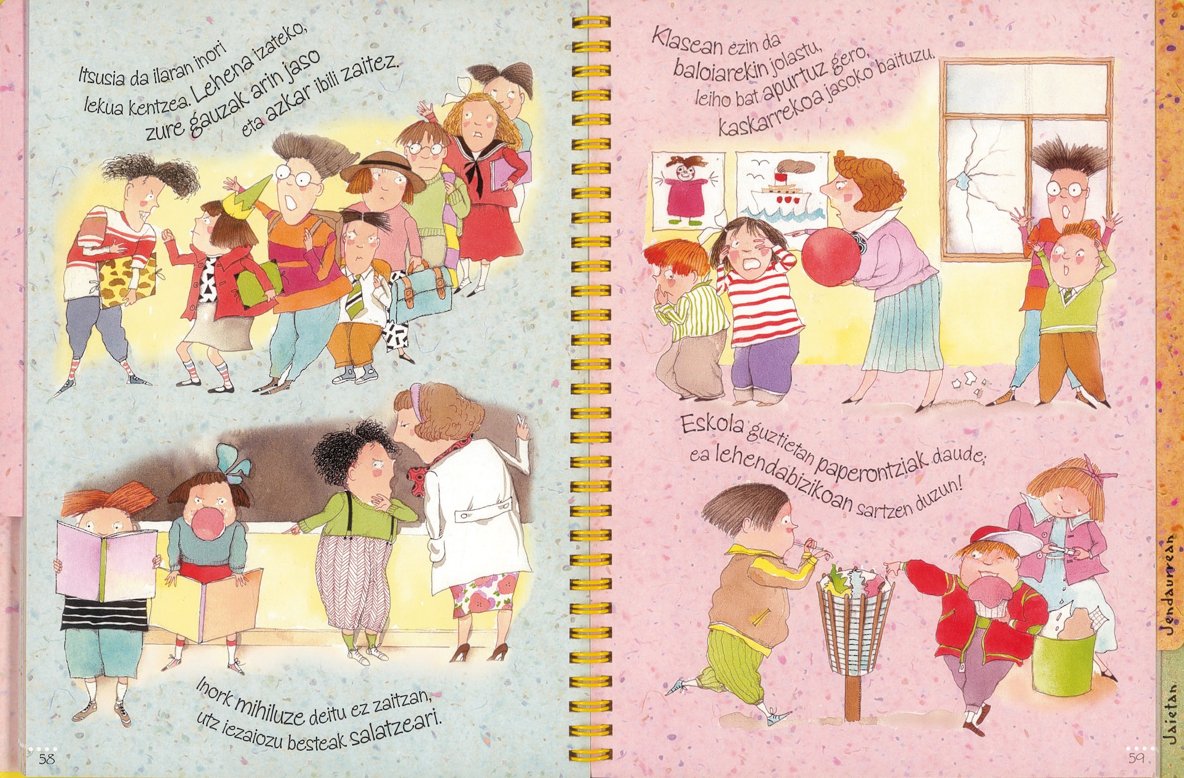 Nola jokatzen duzu mahaian? Eta eskolan? Ziur ondo portatzen zarela, baina liburu hau primeran etorriko zaizu besteei heziketa oneko pertsonak garela erakusten dizkieten xehetasun txiki horiek gogoratzeko! «Jokaera zuzenen» inguruan izan ditzakezun zalantza guztiak argituko dizkizu!