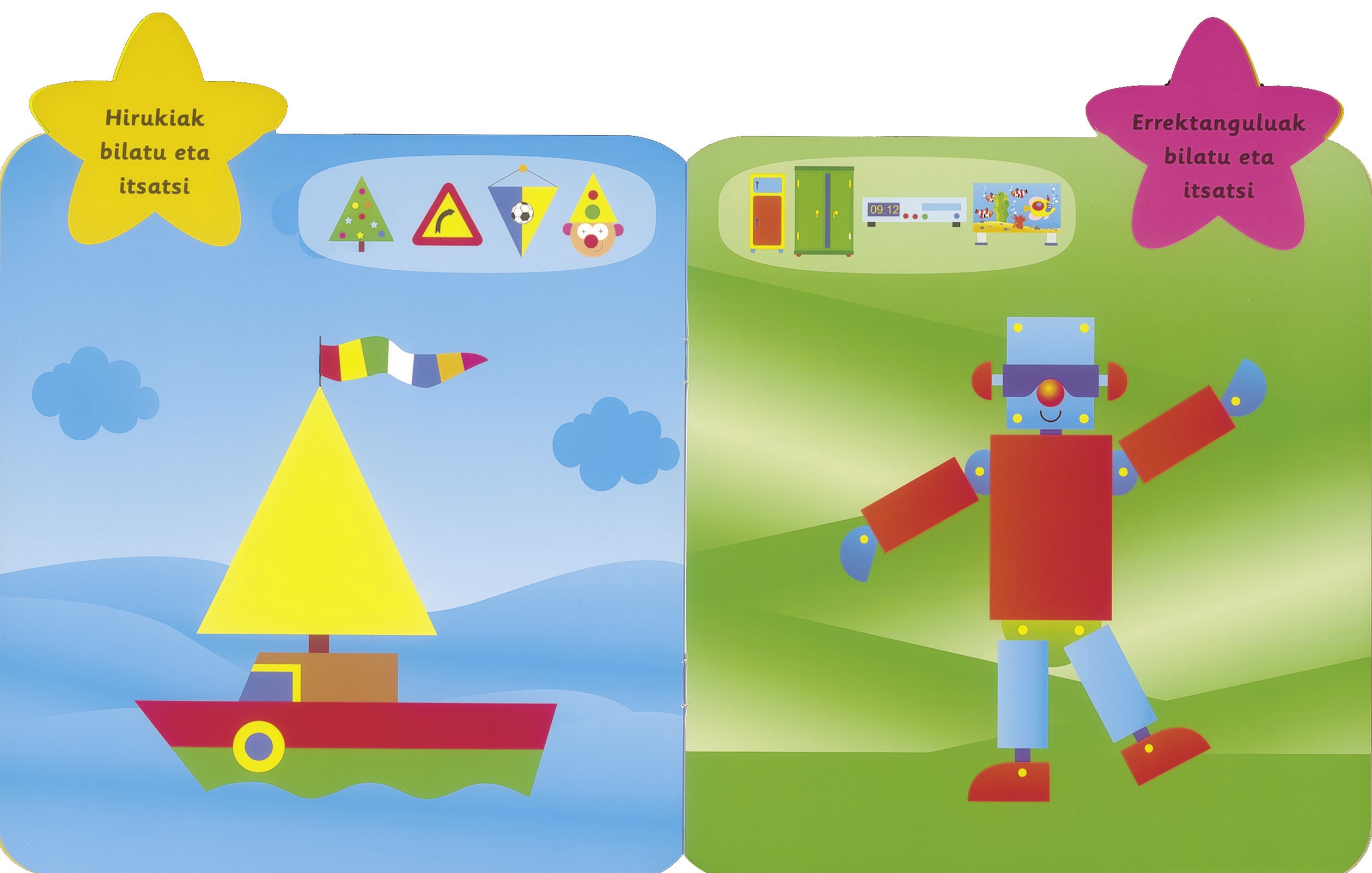 Bilduma dibertigarria, koloretako ilustrazioz apaindua, etxeko txikienek marrazkiak ezagutzen, osagai komunak lotzen eta formak eta koloreak bereizten ikas ditzaten.