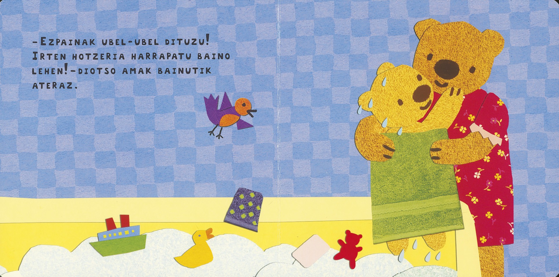 Liburu hau txikitxoek bainua beharrezkoa eta dibertigarria dela ikas dezaten pentsatuta dago. Pantxo hartzatxoari esker, ume guztiek bainuontzian sartu nahiko dute.