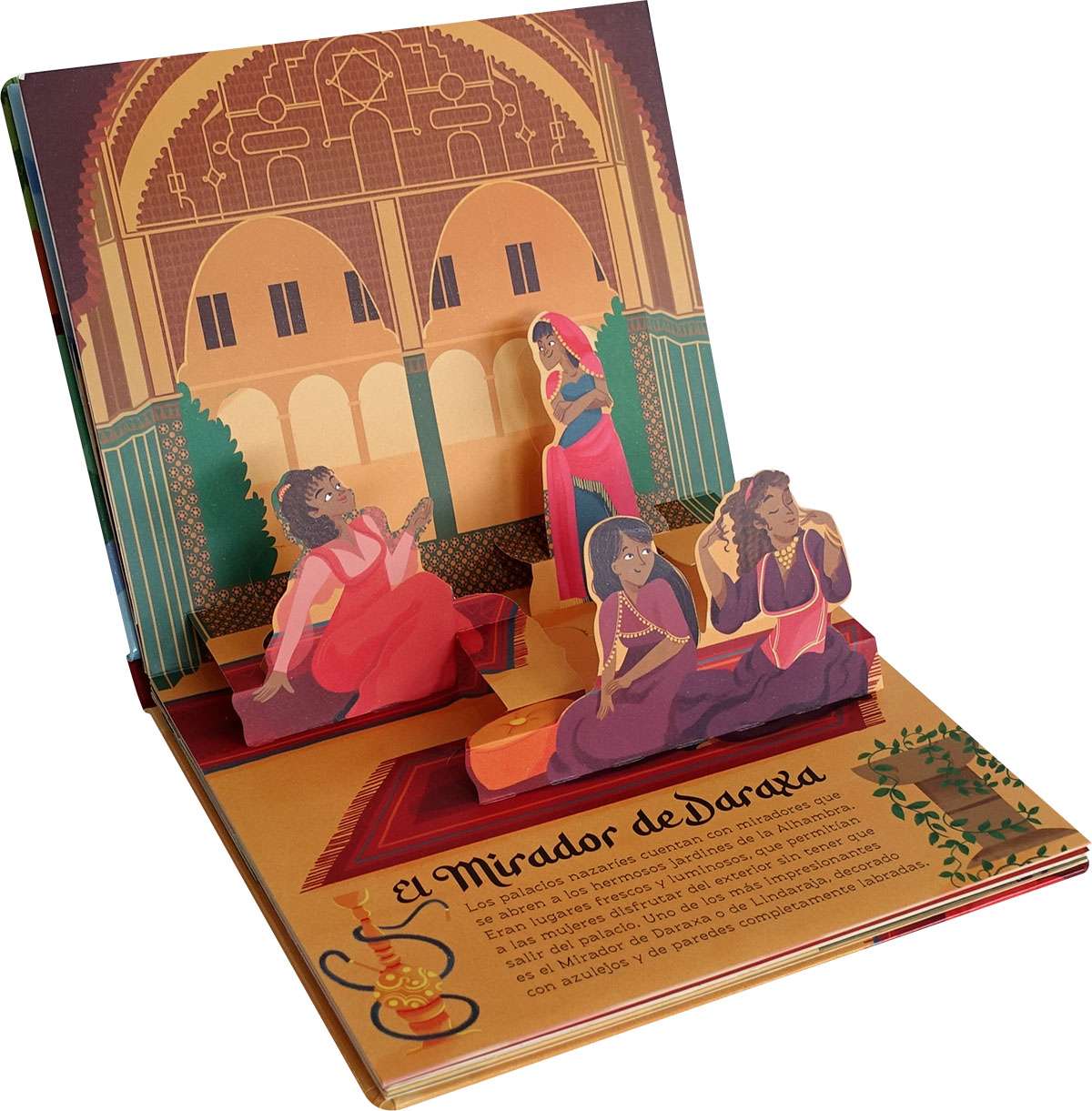 6 increíbles pop-up para explorar el monumental complejo palaciego de la Alhambra: los palacios nazaríes, el Generalife, la alcazaba y los hermosos jardines que hacen de este lugar un sitio extraordinario. Una experiencia única para admirar el hogar de la corte nazarí.