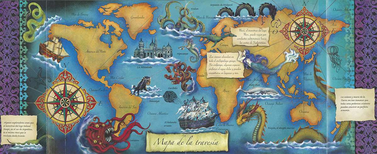 En mis viajes por el mundo son muchas las especies que he descubierto; sin embargo, tengo la sensación de que el mar guarda para sí muchos misterios... ¿Qué extrañas criaturas se esconden todavía bajo esas aguas oscuras?. Jeanne Baret, botánica francesa del siglo XVIII, fue la primera mujer que dio la vuelta al mundo, y lo hizo disfrazada de hombre en una expedición en la que se realizó un catálogo de especies de todo el planeta. La autora de este volumen imagina qué habría escrito Jeanne en un supuesto diario de abordo y nos invita a un viaje fascinante en el que el lector podrá descubrir extrañas criaturas marinas, como el kraken o Leviatán; lugares míticos, como la Atlántida; barcos misteriosos y terroríficos, como El holandés errante, y mucho más, todo ello acompañado de unas fantásticas ilustraciones a todo color y salpicado de solapas y ventanas en las que encontraremos datos y curiosidades sobre todas las criaturas que se describen.