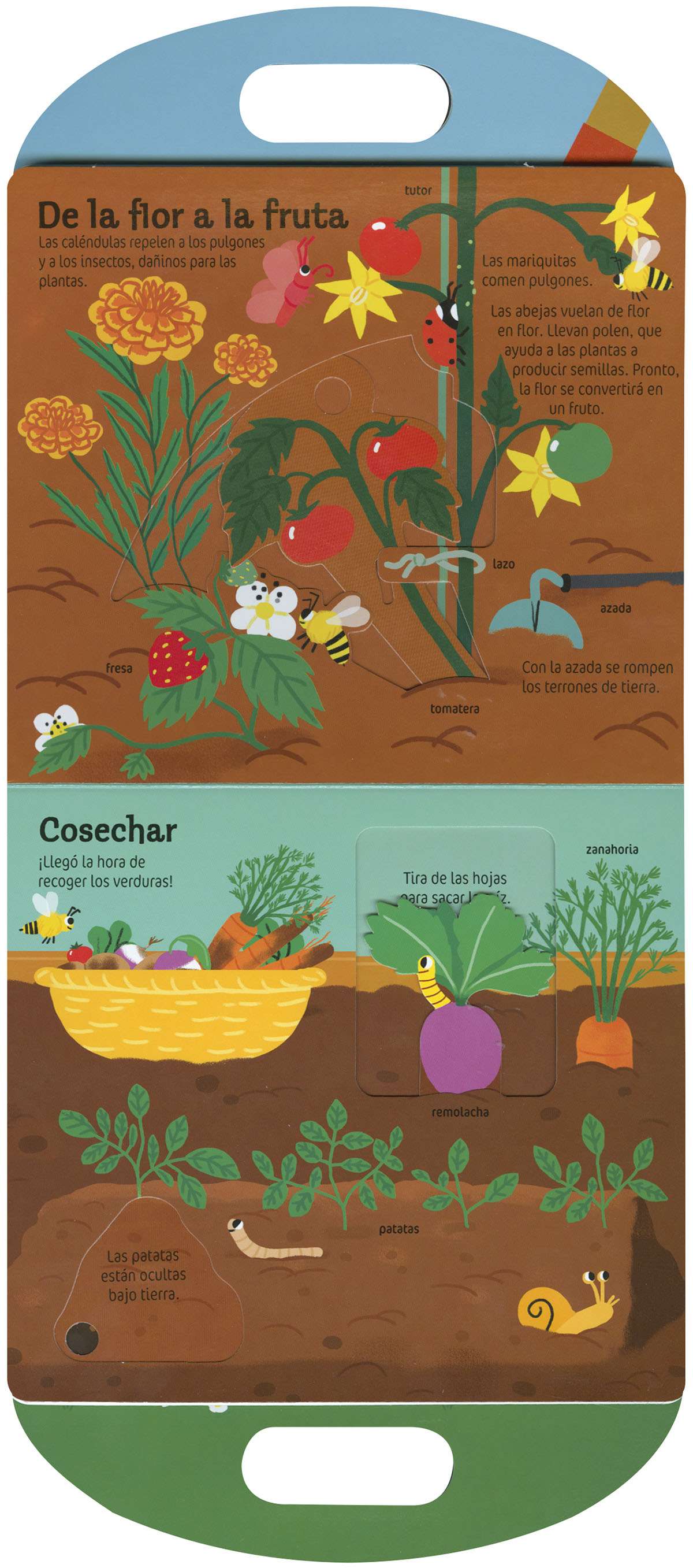 Este huerto te espera para que prepares la tierra, siembres y riegues... Y, tras cuidarlo, llega el día de la cosecha. ¡Qué ricas verduras! Con este libro los más pequeños desarrollan el interés por la vida real con juegos que imitan los gestos de verdad, mejoran la motricidad, descubren la responsabilidad mostrando el crecimiento de las plantas y adquieren vocabulario relacionado con la agricultura.