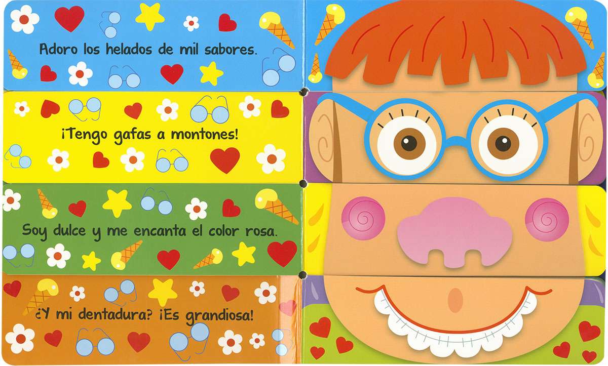 En este libro, vas a encontrar un montón de caras chistosas que podrás cambiar a tu gusto y mezclar con otras. Al final, mírate en el espejo: ¿qué cara se te queda?