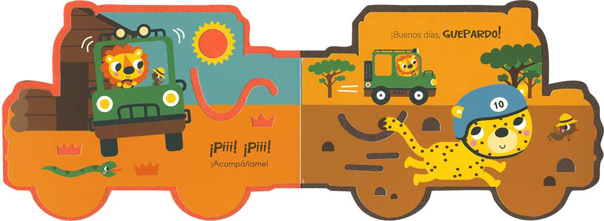 Sigue la ruta del león pasando el dedito por el camino de fieltro, y saluda a todos sus amigos mientras sientes la textura de este precioso libro troquelado. Con sus simpáticas ilustraciones, ¡este libro infantil te hará viajar con la imaginación!