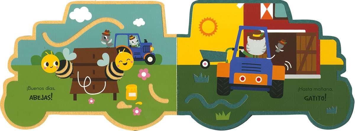 Sigue la ruta del tractor pasando el dedito por el camino de fieltro, y saluda a todos sus amigos mientras sientes la textura de este precioso libro troquelado. Con sus simpáticas ilustraciones, ¡este libro infantil te hará viajar con la imaginación!