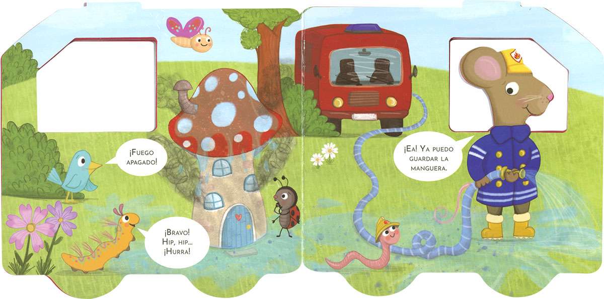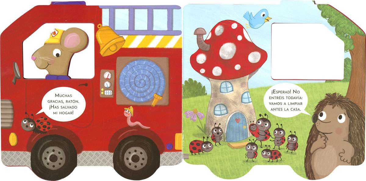 ¿A quién hay que llamar cuando se desata un incendio? ¡A los bomberos!Un libro sin esquinas, con páginas de goma EVA y con un protagonista Un libro sin esquinas, con páginas de goma EVA y con un protagonista conductor.