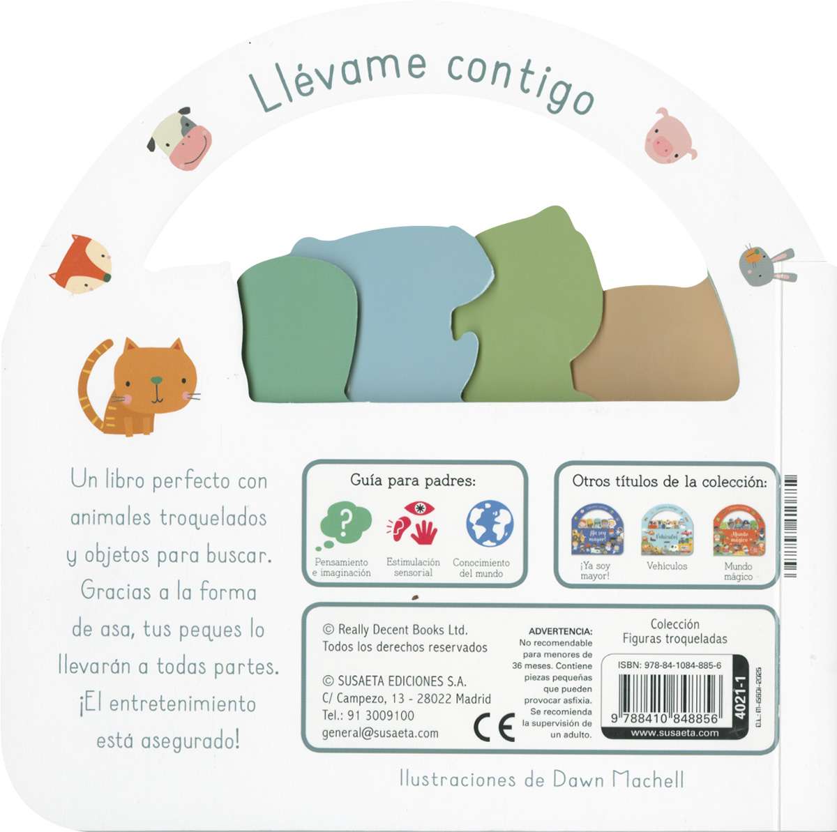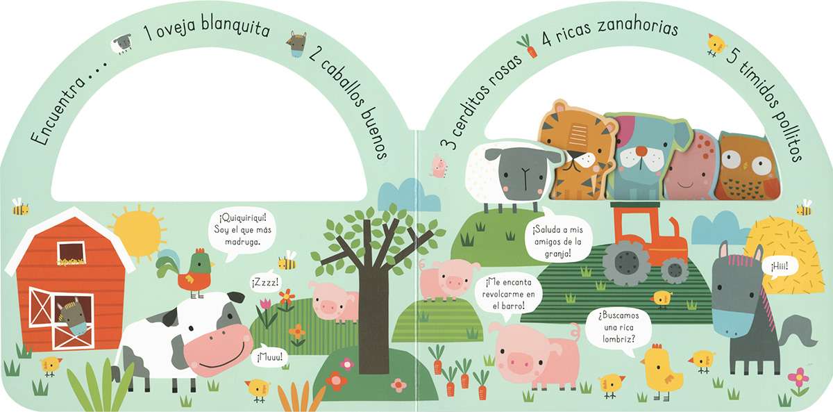 ¿Qué animales asoman por ahí? Una oveja, un tigre, un perro, un pulpo... Cada uno habita en un sitio diferente, pero viven con otros animales y por eso siempre están felices. ¿Quieres conocerlos a todos? Pues agarra este precioso libro de cartón por su asa y ¡llévatelo!