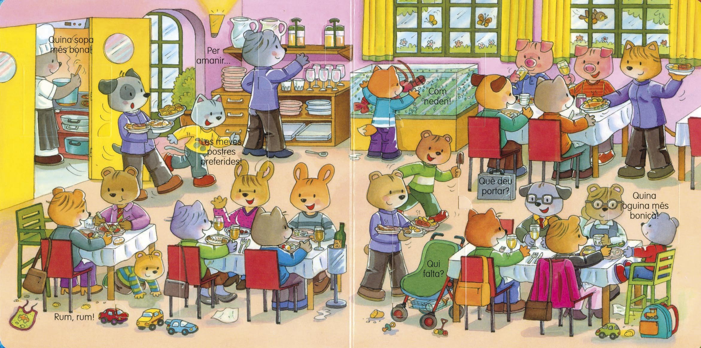 Amb aquest llibre ple de finestres podràs mirar com són els bars i restaurants i descobrir tot el que s'hi amaga. Hi ha un munt de sorpreses!