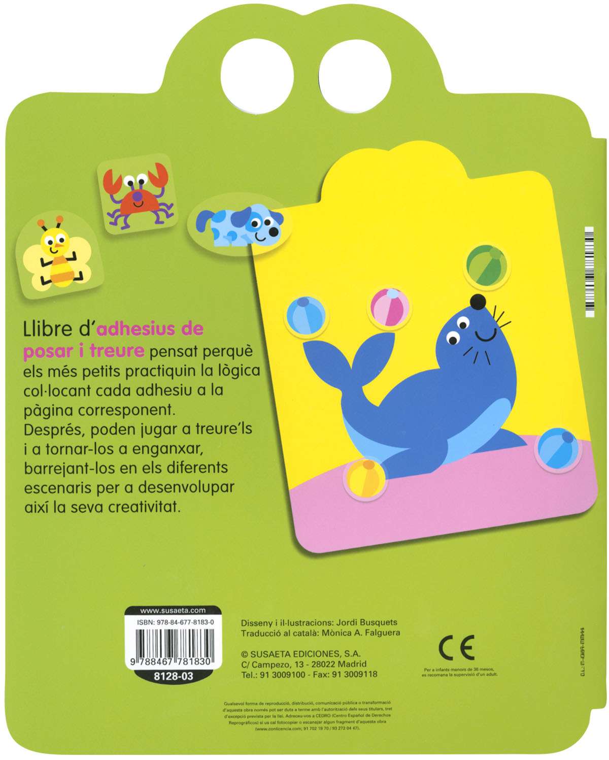 Llibre d'adhesius de posar i treure pensat perquè els més petits practiquin la lògica col·locant cada adhesiu a la pàgina corresponent. Després, poden jugar a treure'ls i a tornar-los a enganxar, barrejant-los en els diferents escenaris per a desenvolupar així la seva creativitat.