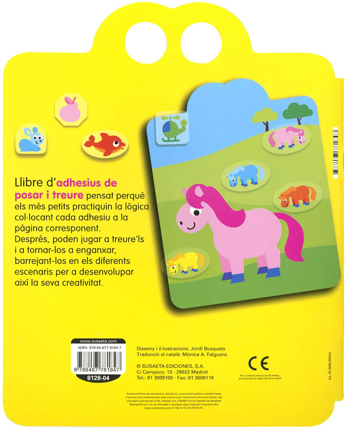 Llibre d'adhesius de posar i treure pensat perquè els més petits practiquin la lògica col·locant cada adhesiu a la pàgina corresponent. Després, poden jugar a treure'ls i a tornar-los a enganxar, barrejant-los en els diferents escenaris per a desenvolupar així la seva creativitat.