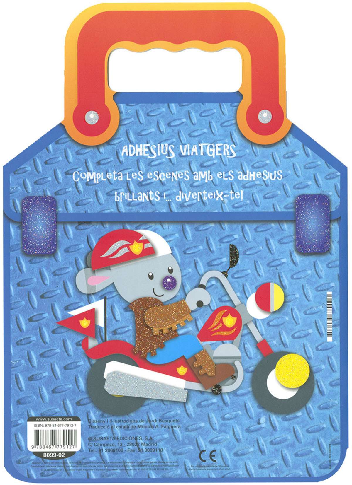 Enquadernació: Cartolina plastificada mat amb purpurina i encunyada amb nansa, interior amb adhesius brillants