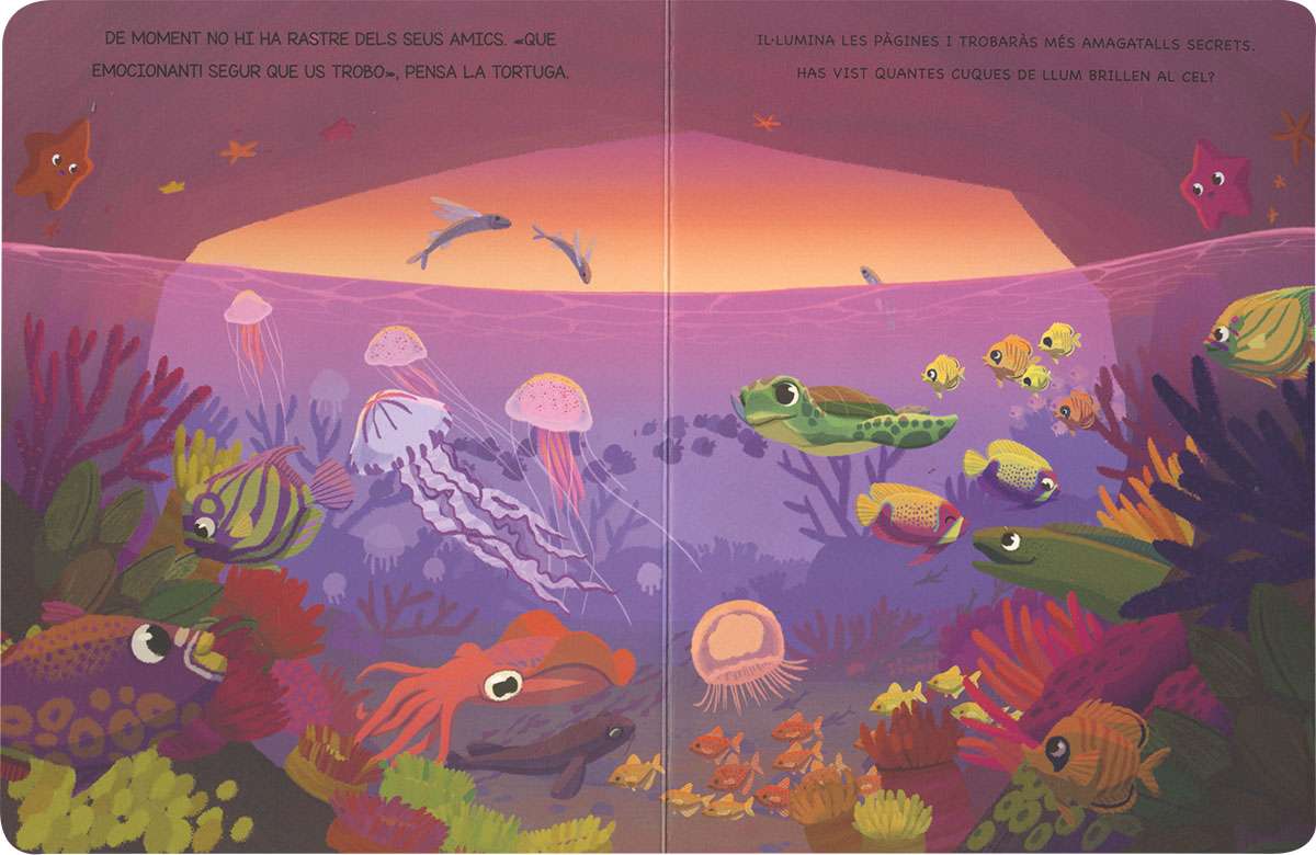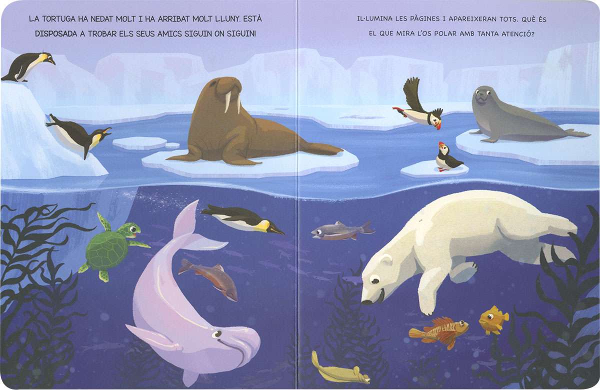 Il·lumina el teu conte amb aquest llibre de cartró que inclou una llanterna per poder veure tot el que s'amaga sota les aigües de la mar. Llegeix, busca i sorprèn-te!