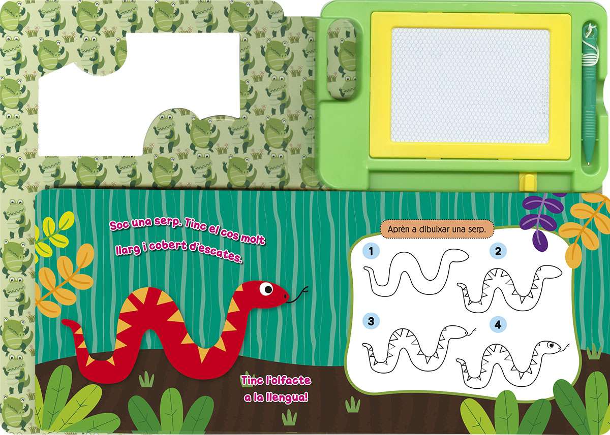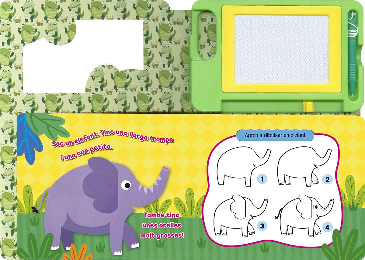 Coneixes els animals de la selva? Amb aquest llibre de cartró podràs aprendre a dibuixar-los, ja que inclou indicacions i una pissarra on podràs practicar tantes vegades com vulguis. Aprendràs a dibuixar deu animals!