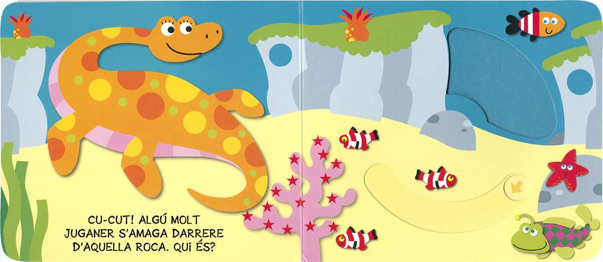 Pots trobar els dinosaures que s'amaguen en aquest llibre de cartró? Fes lliscar les peces mòbils i descobreix-los.
