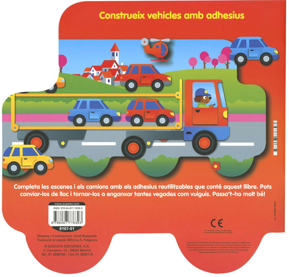 Completa les escenes i els camions amb els adhesius reutilitzables que conté aquest llibre. Pots canviar-los de lloc i tornar-los a enganxar tantes vegades com vulguis. Passa't-ho molt bé!