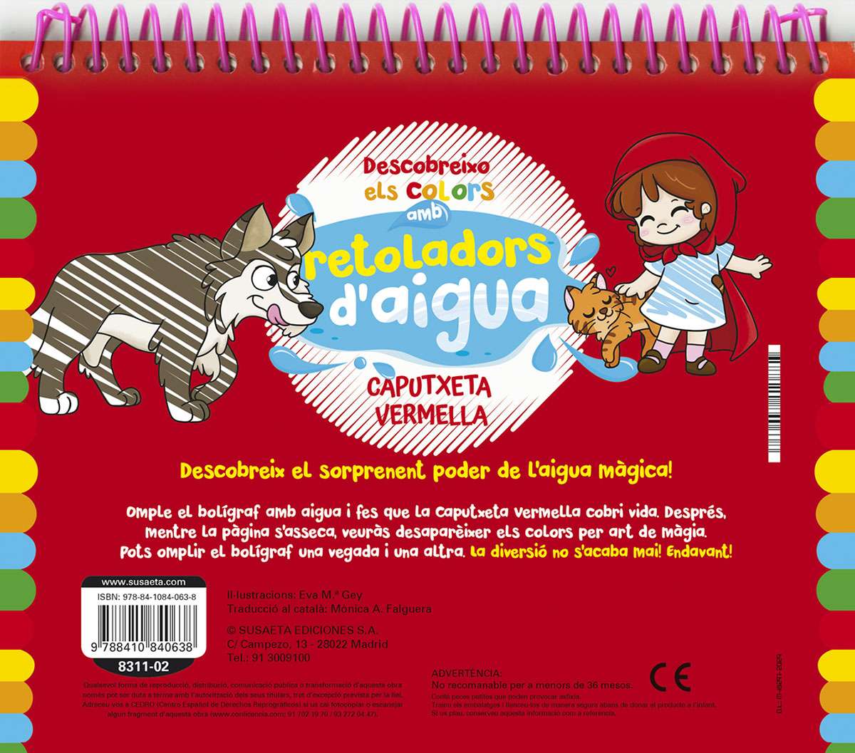 Descobreix el sorprenent poder de l'aigua màgica! Omple el bolígraf amb aigua i fes que la Caputxeta Vermella cobri vida. Després, mentre la pàgina s'asseca, veuràs desaparèixer els colors per art de màgia. Pots omplir el bolígraf una vegada i una altra. La diversió no s'acaba mai! Endavant!