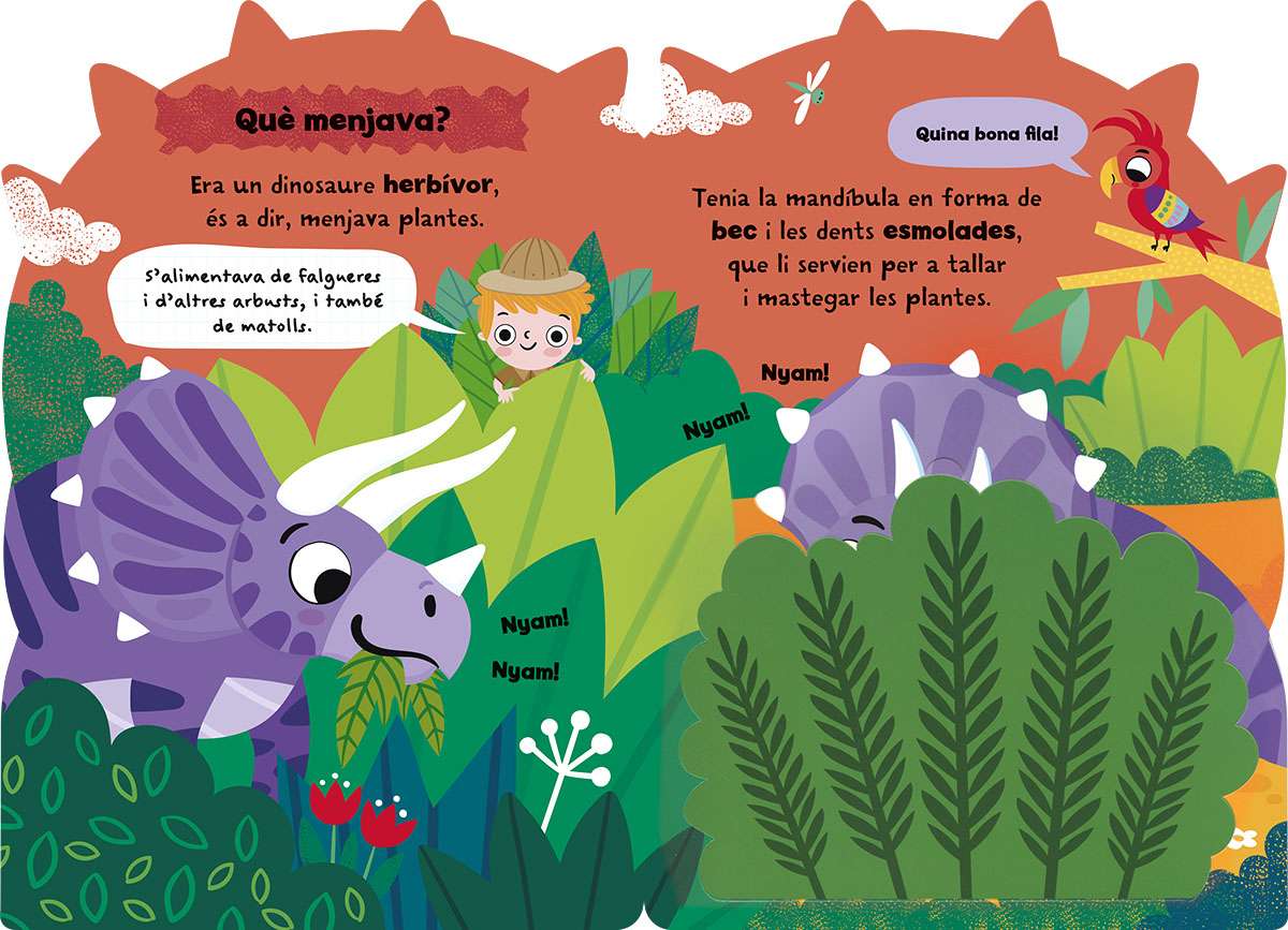 Aixeca les solapes, endinsa't en el món prehistòric i coneix l'afable triceràtops. Un llibre de cartró gegant perfecte per a joves amants dels dinosaures.