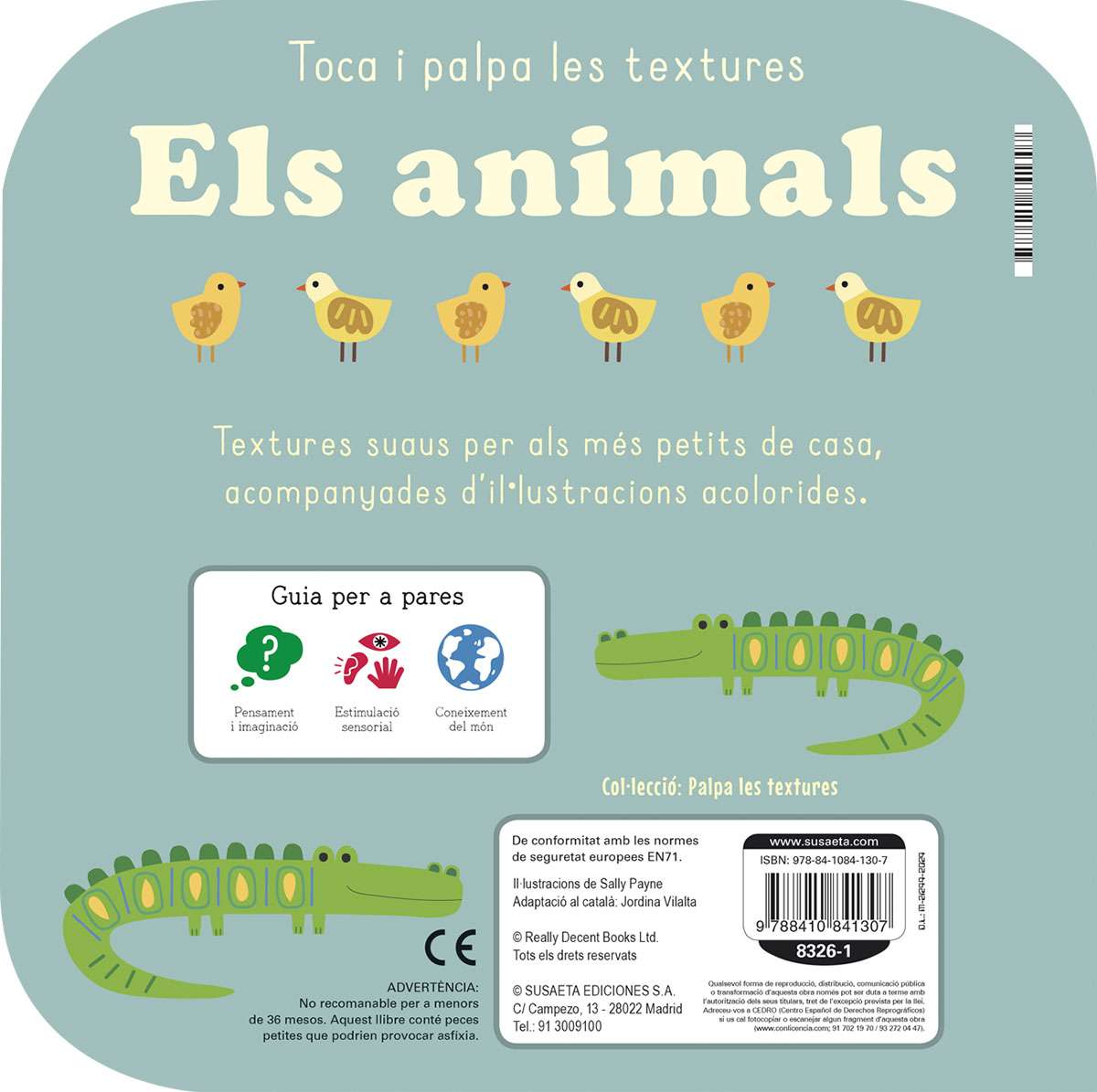 Enquadernació: Libro de cartón, con acabado mate y troquelado. Con texturas en el interior.
