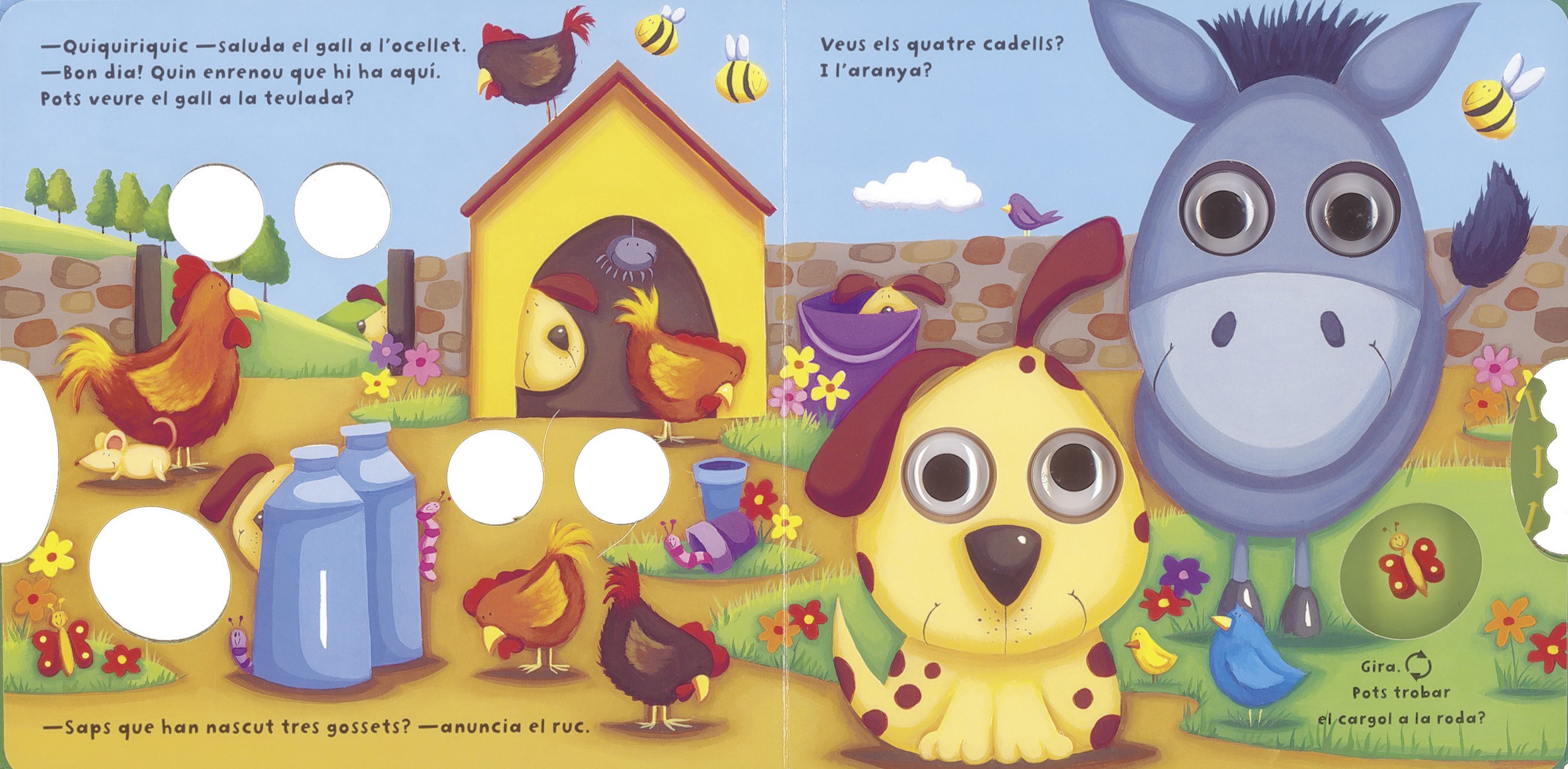 Enquadernació: Cartoné amb coberta plastificada i encunyada amb roda i 4 ulls que es mouen