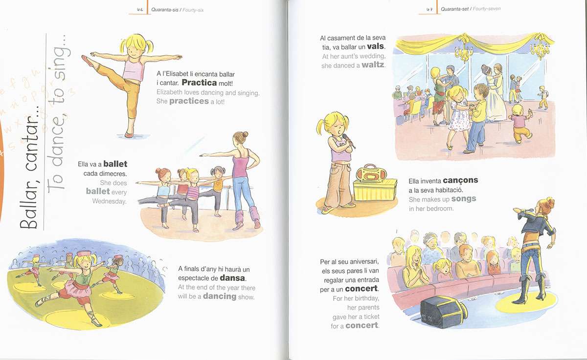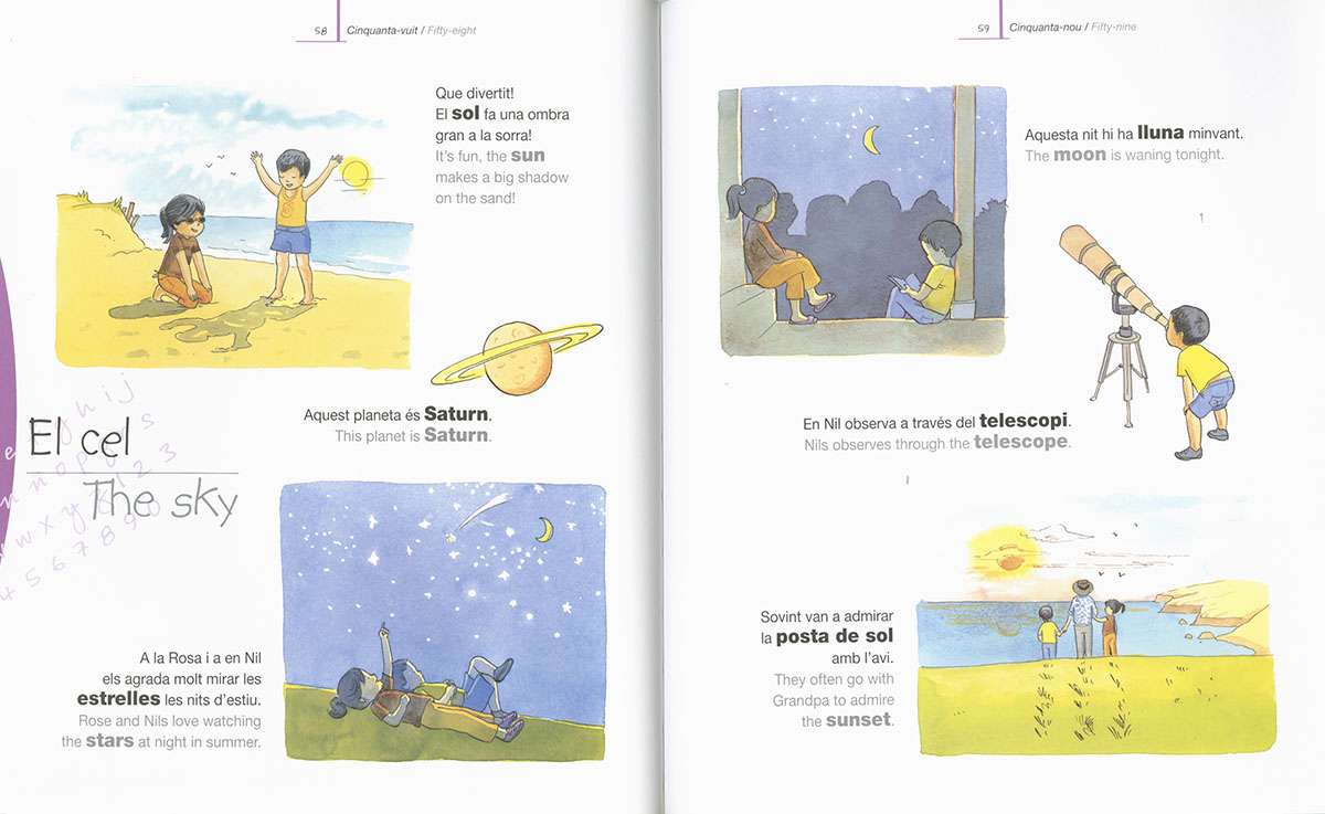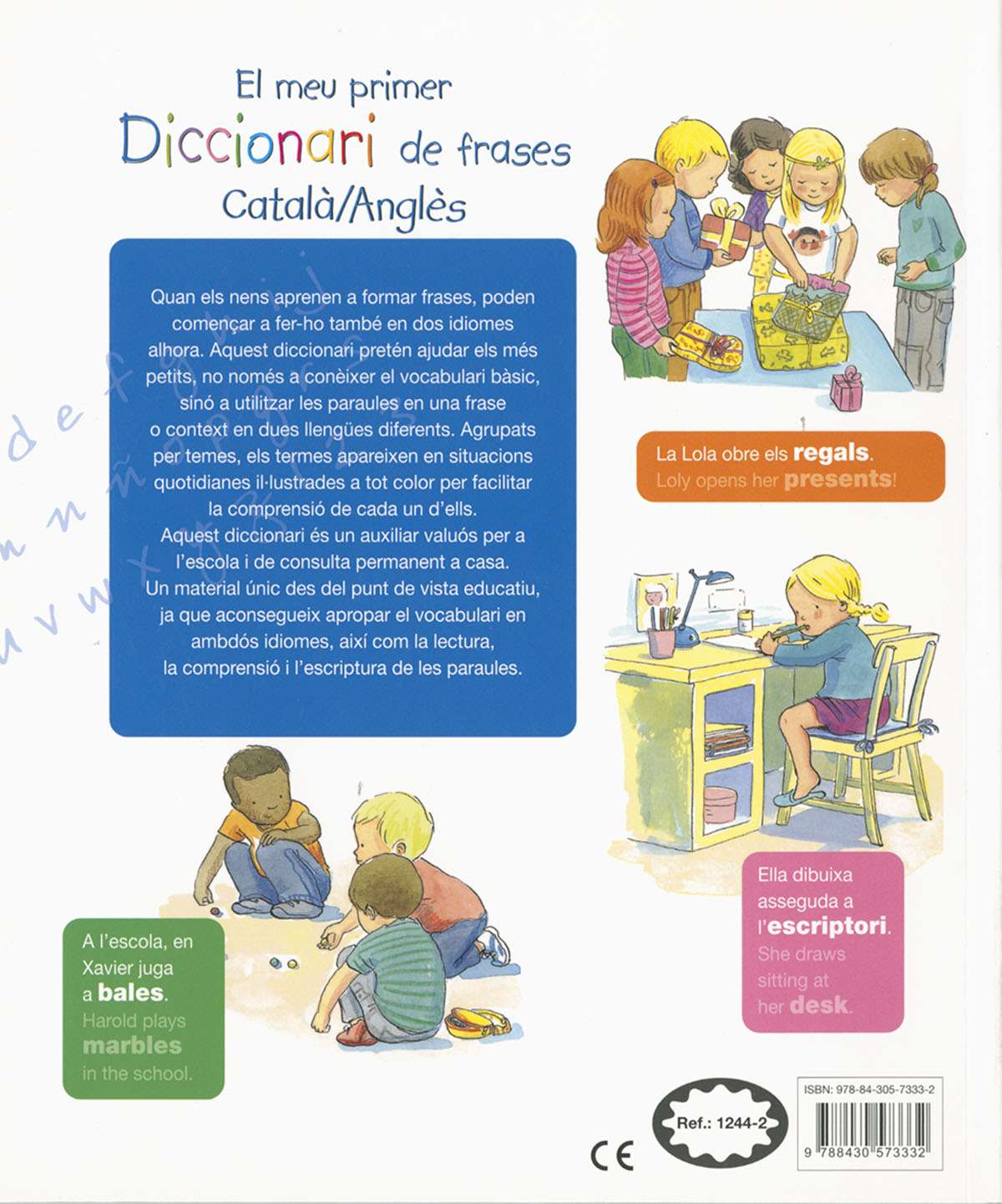 Quan els nens aprenen a formar frases, poden començar a fer-ho també en dos idiomes alhora. Aquest diccionari pretén ajudar els més petits, no només a conèixer el vocabulari bàsic, sinó a utilitzar les paraules en una frase o context en dues llengües diferents. Un material únic des del punt de vista educatiu, ja que aconsegueix apropar el vocabulari en ambdós idiomes, així com la lectura, la comprensió i l´escriptura de les paraules.