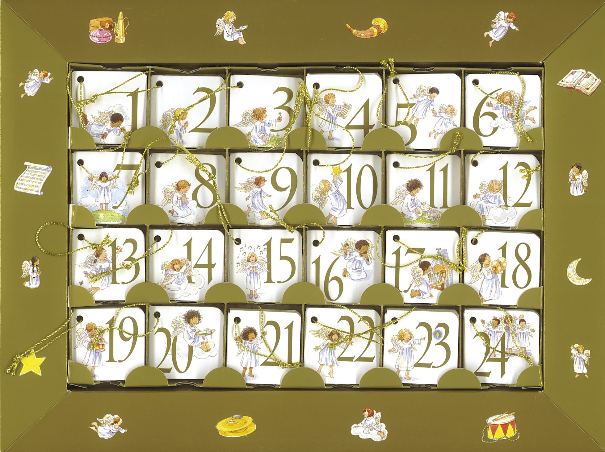 Enquadernació: Caixa amb 24 libritos de cartró plastificat i encunyat per penjar en l'arbre de Nadal