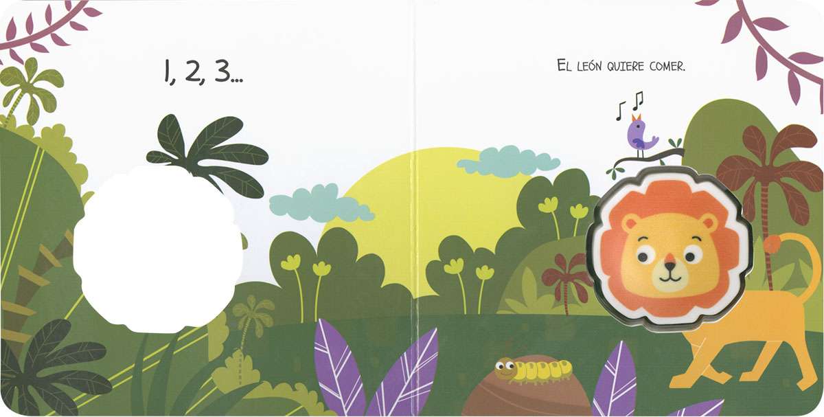 Hoy el pequeño león va a hacer un montón de nuevos amigos. ¿Quieres conocerlos? Pasa las páginas de este precioso libro de cartón, pulsa en la carita del león y ¡diviértete con el sonido!