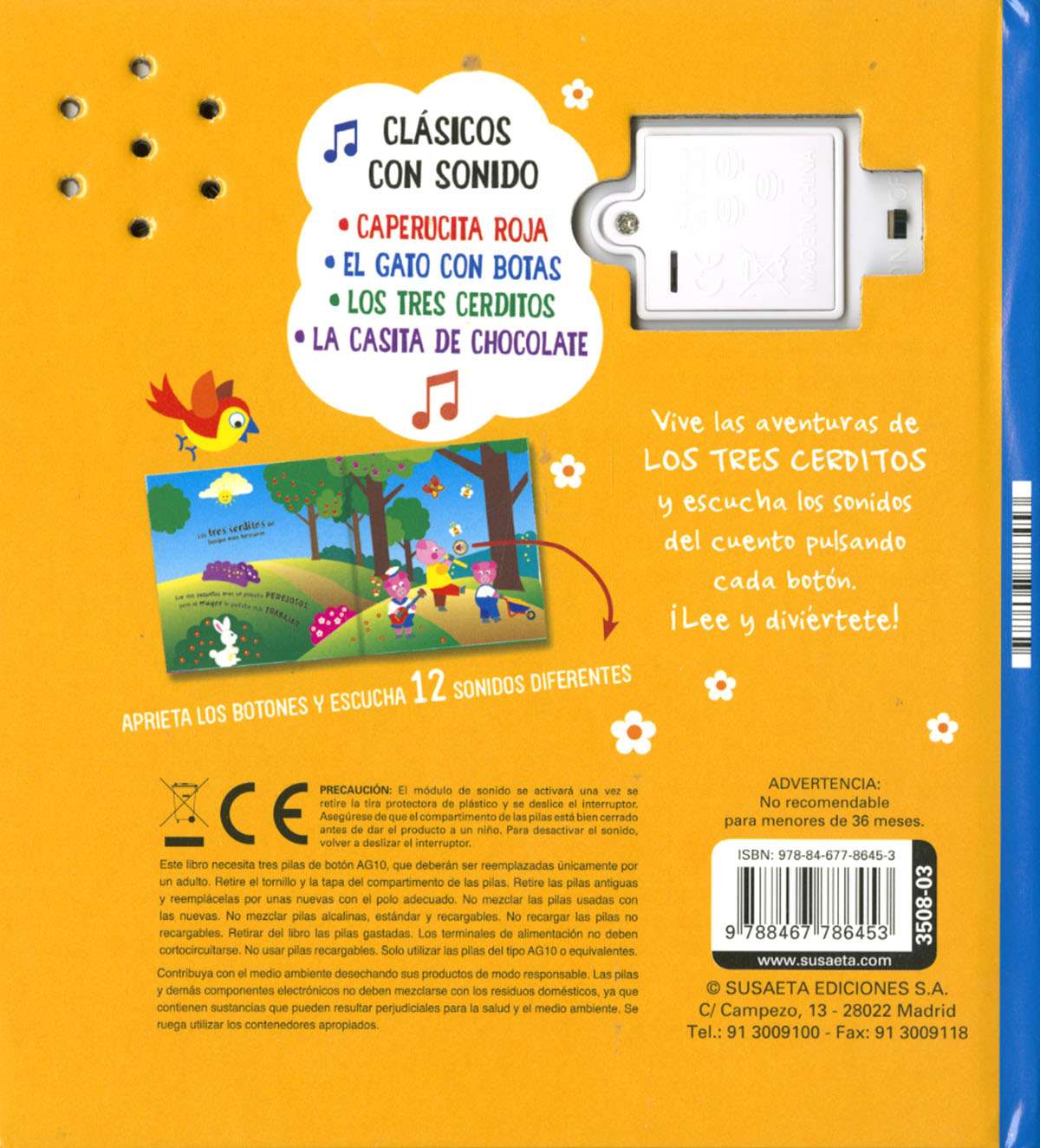 Vive las aventuras de LOS TRES CERDITOS y escucha los sonidos del cuento pulsando cada botón. ¡Lee y diviértete!