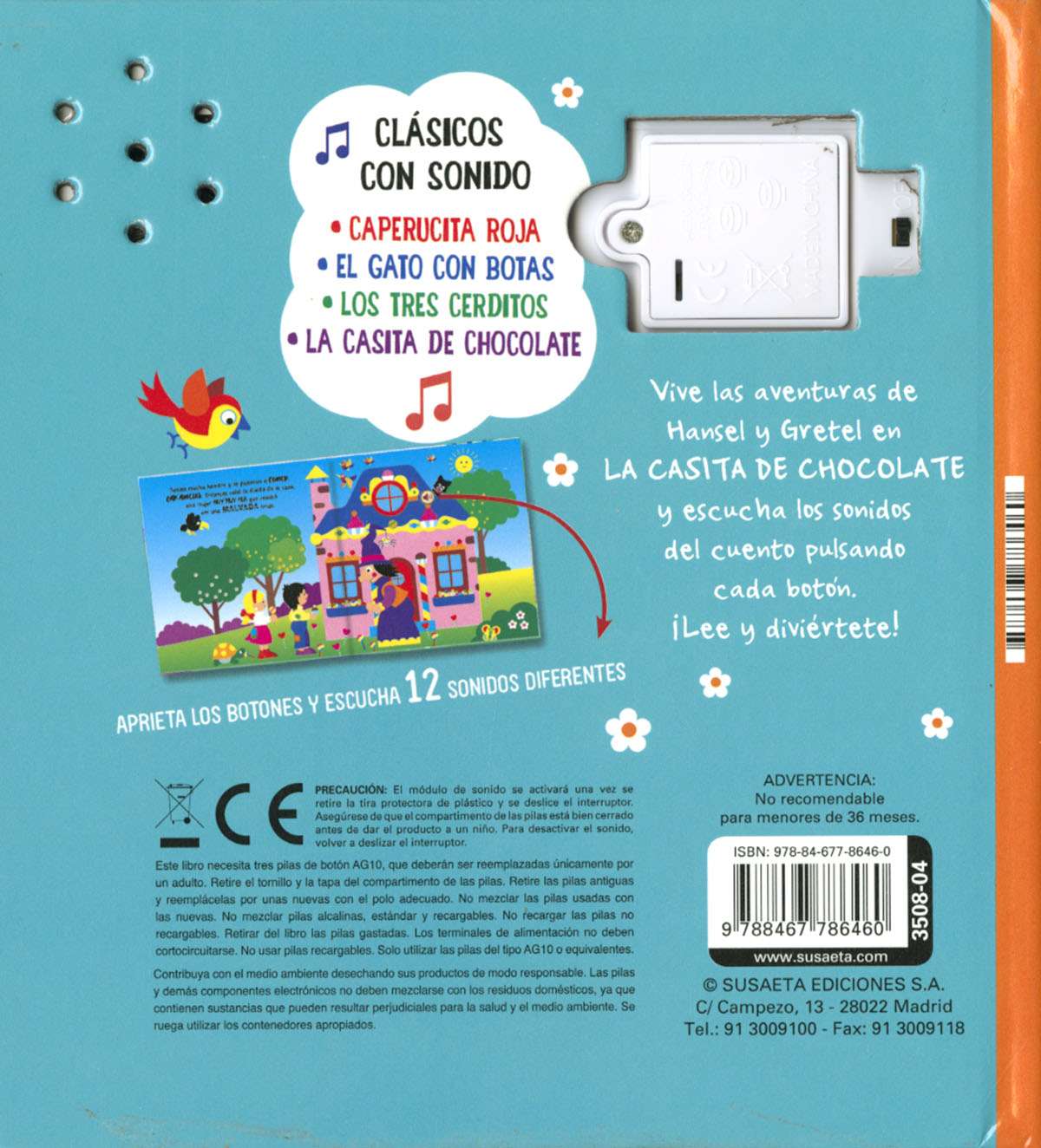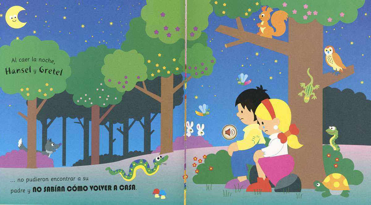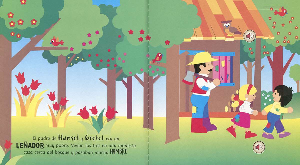 Vive las aventuras de Hansel y Gretel en LA CASITA DE CHOCOLATE y escucha los sonidos del cuento pulsando cada botón. ¡Lee y diviértete!