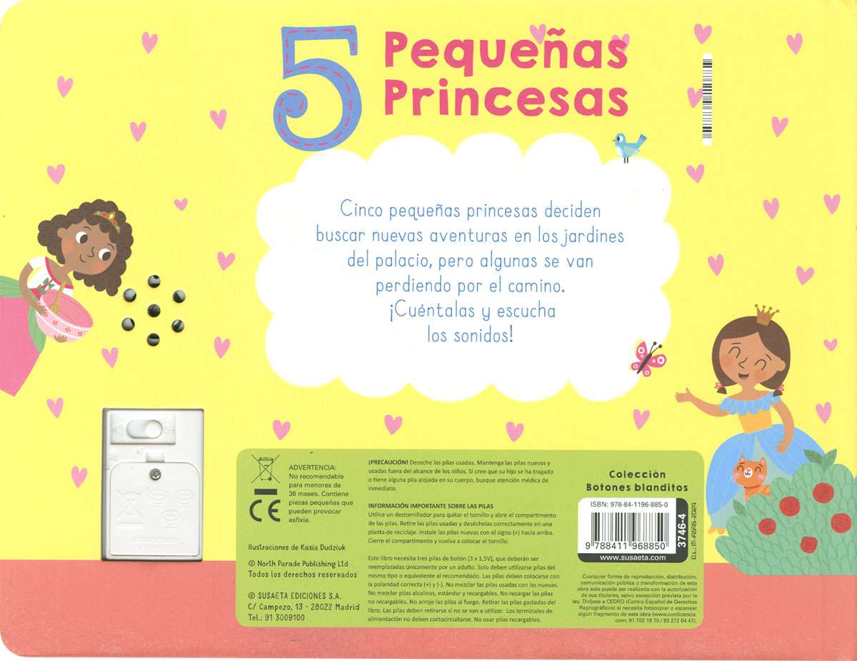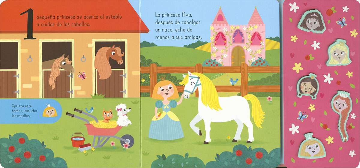 ¿Cuántas princesas hay? Cuéntalas y escucha el sonido que hacen pulsando los botones de silicona mientras lees este precioso libro de cartón. ¡Un libro infantil muy divertido!